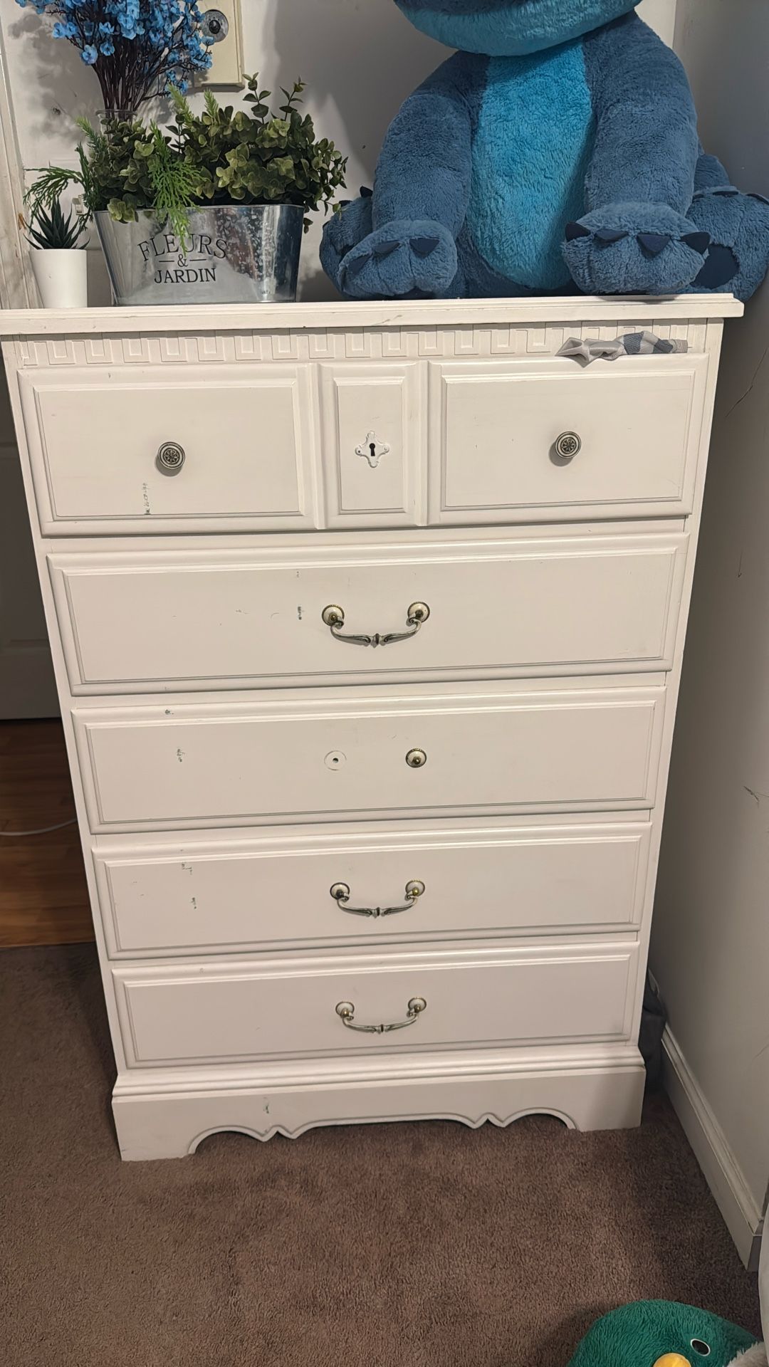 tall dresser, long dresser and night stand. Nothing on top of the dressers are included!