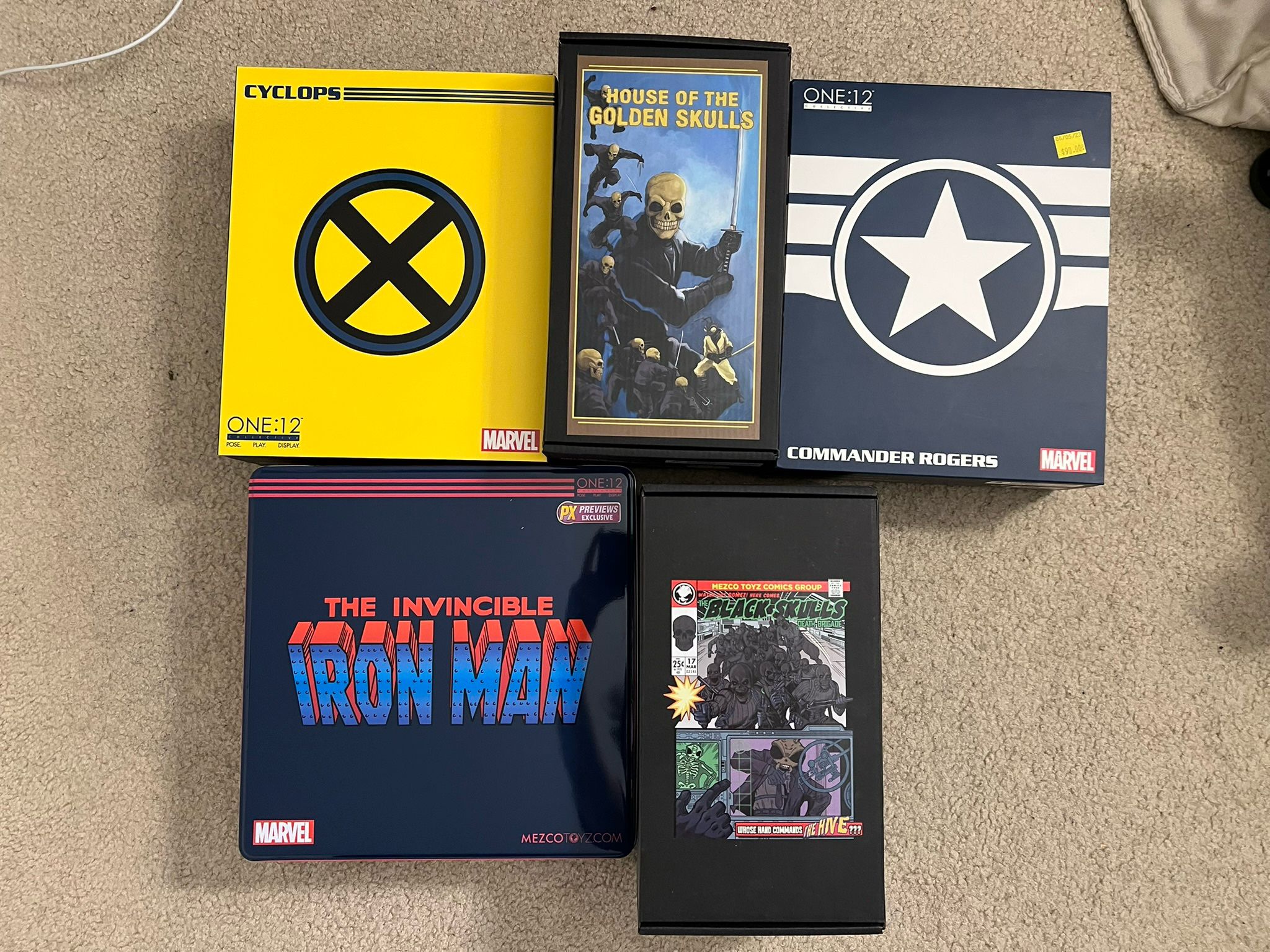 Mezco Lot Cyclops, Black Skulls, Captain America, Iron Man