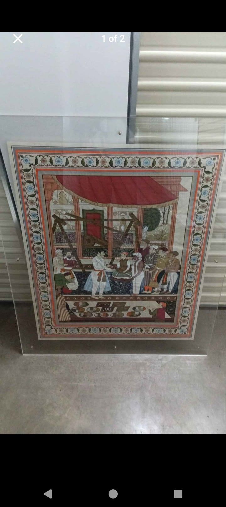 Hand painted on silk Comes in plexiglass display case 40"*24" dimensions