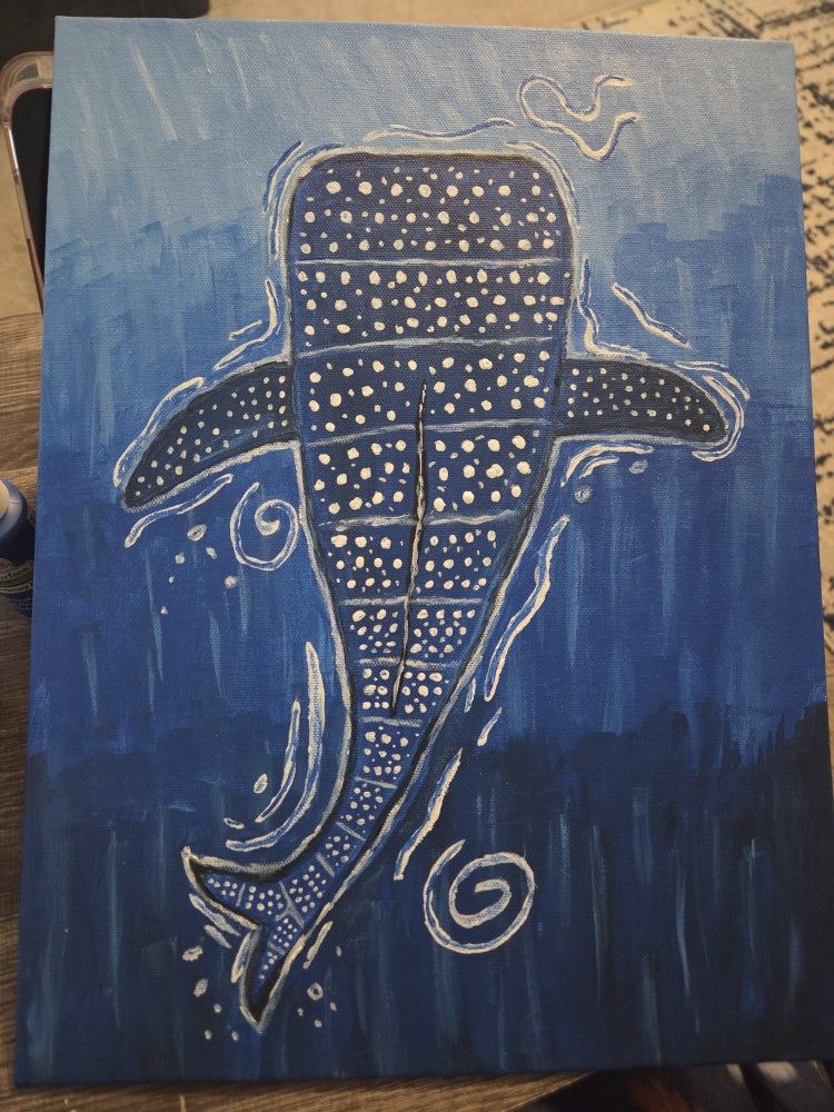 Handmade, Acrylic painting of a whale shark. Also you can message me with request of different types of paintings.