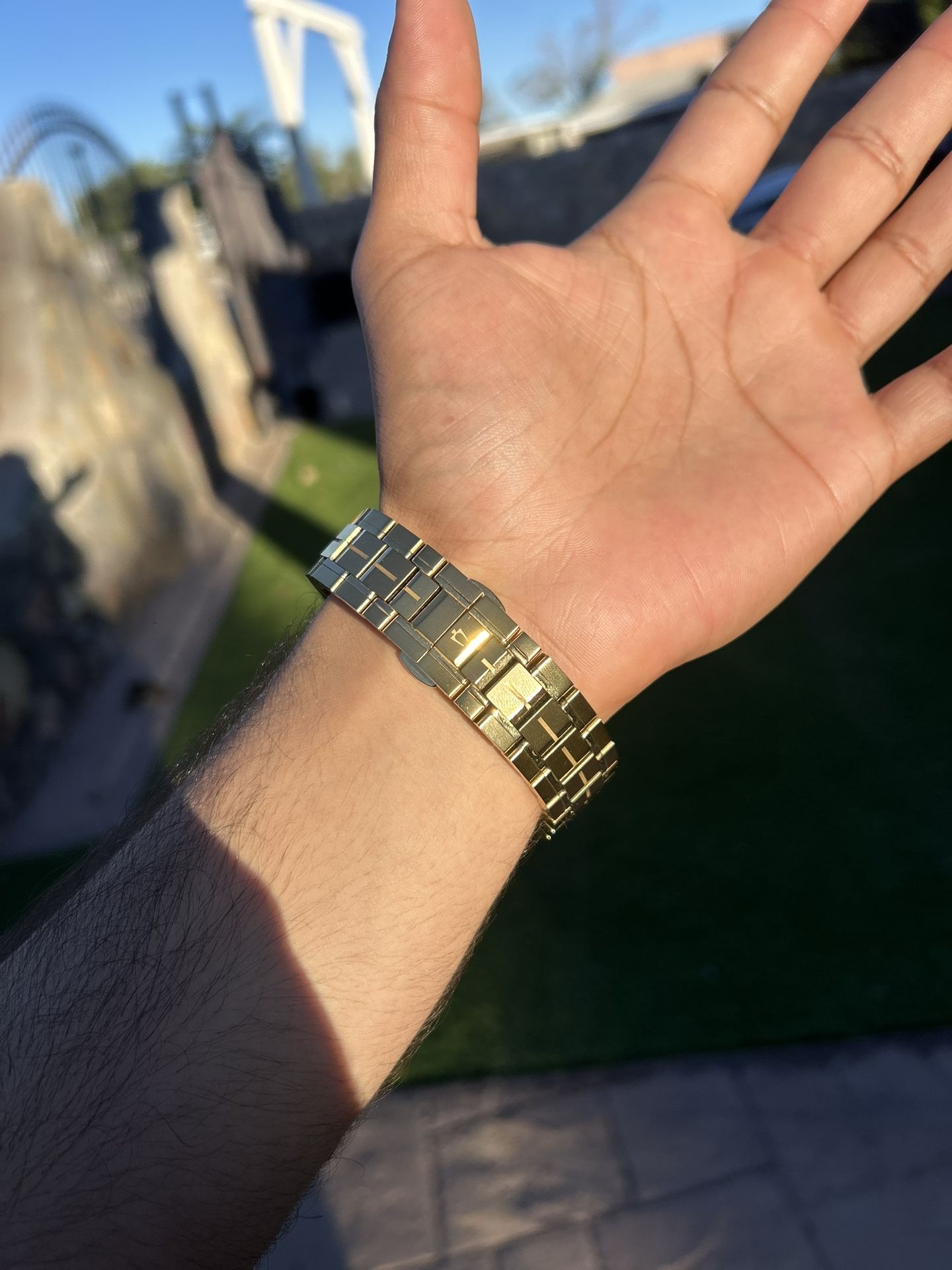 Dial Silver-Tone Diamond Accents;Gold-Tone Accents Luminous Hands Case 40 mm Gold-Tone Stainless Steel Crown Protector;Screw-Back Case;Screw-Down Crown Diamond Bezel Lug 20 mm Band Bracelet Stainless Steel Deployant Clasp with Push Buttons *comes with original box*