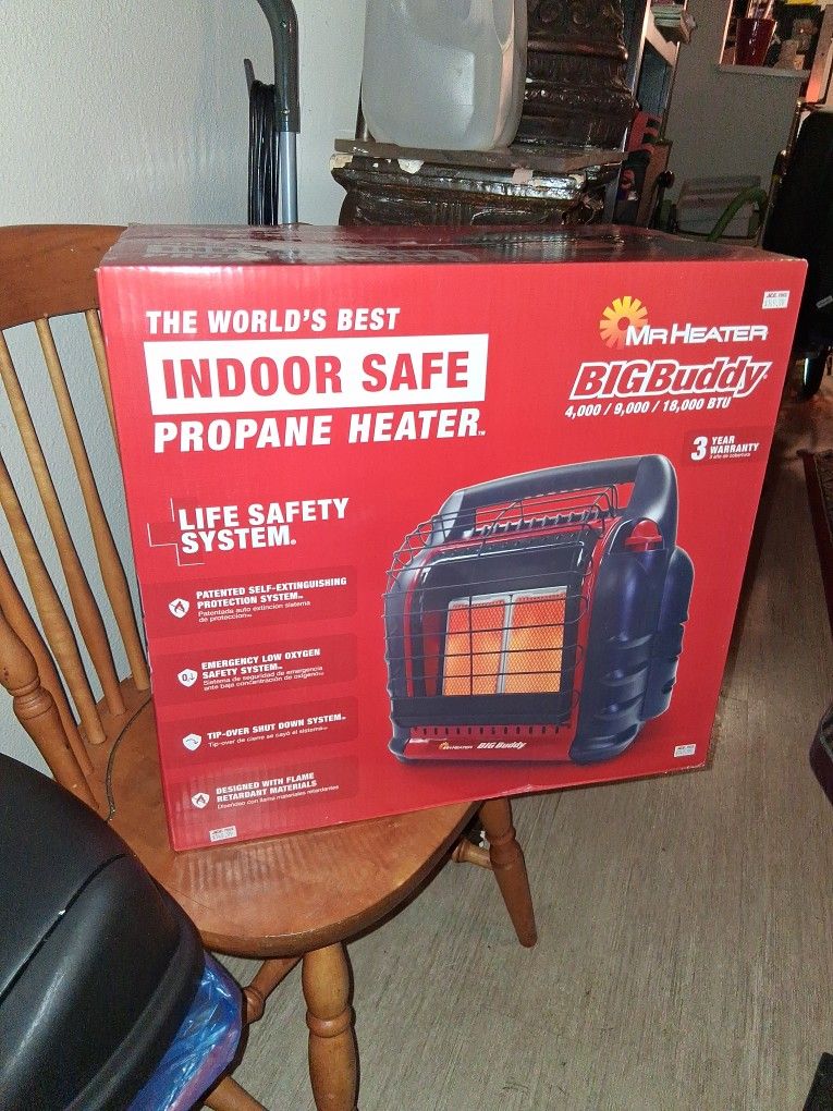 Never opened big buddy propane heater usually retails for around $200. Selling half price because were moving.