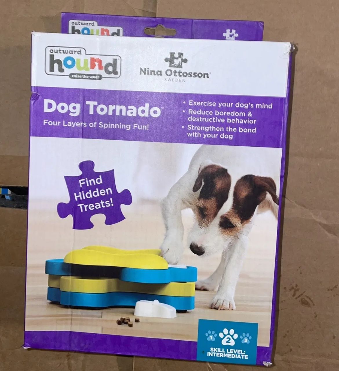Enhance your furry friend's playtime with this interactive toy from Outward Hound. The Nina Ottosson Dog Tornado treat puzzle is designed to keep your dog entertained for hours. Made of durable plastic, this toy can withstand the rough play of medium-sized dogs. With its treat dispensing feature, the Dog Tornado is perfect for stimulating your dog's mind and body. The puzzle has four levels with sliding compartments that conceal treats, making it more challenging for your dog to find them. This toy is ideal for pet owners who want to keep their dogs engaged and entertained.