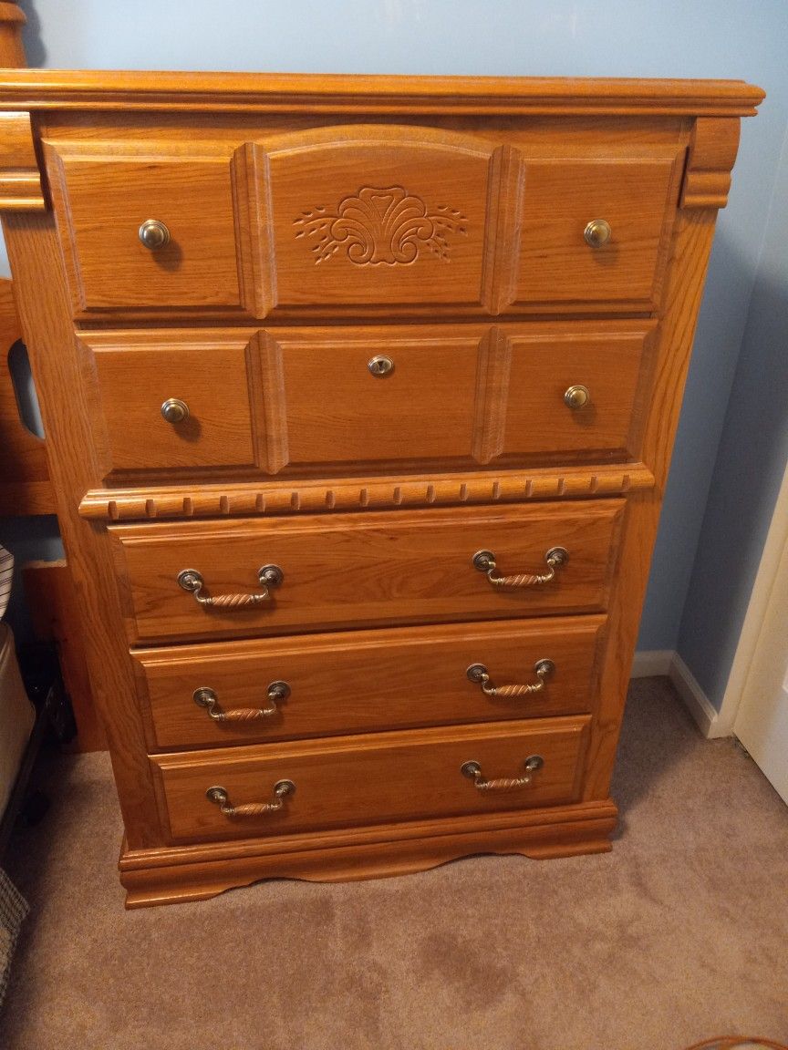 4 piece bedroom set in great condition. Made of real wood. Must pickup. Can take mattress as well. Headboard is for a queen or full size. Purchase entire set for $350 or wardrobe only for $150.