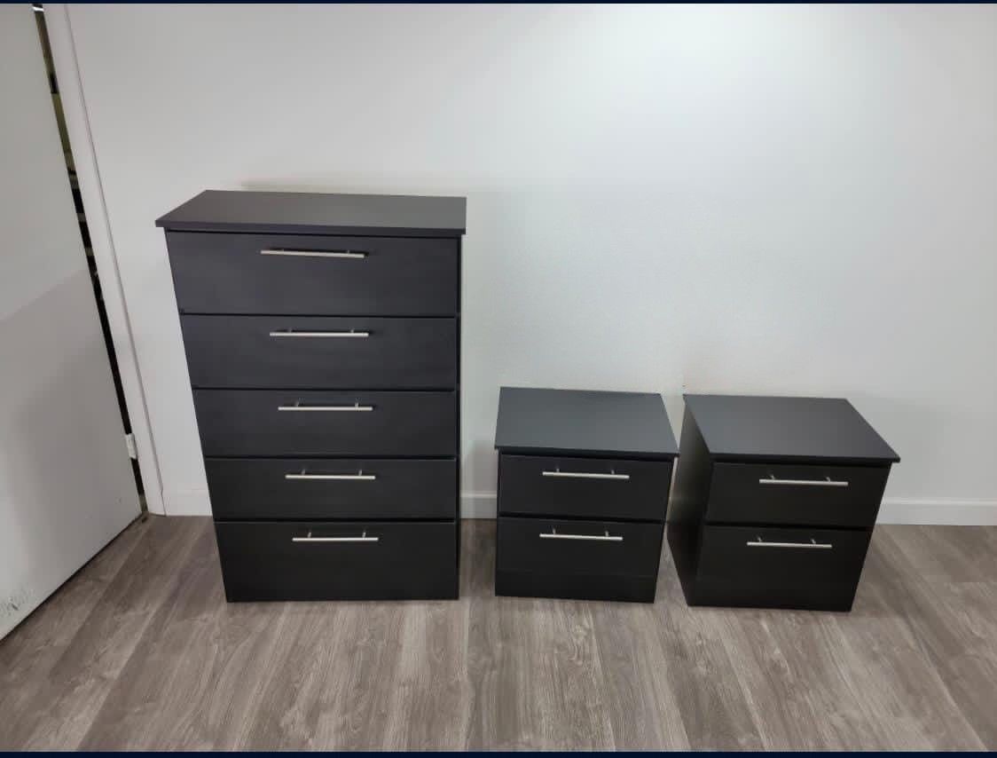 BLACK CHEST AND NIGHTSTANDS _ GAVETERO Y MESITAS DE NOCHE NEGRO