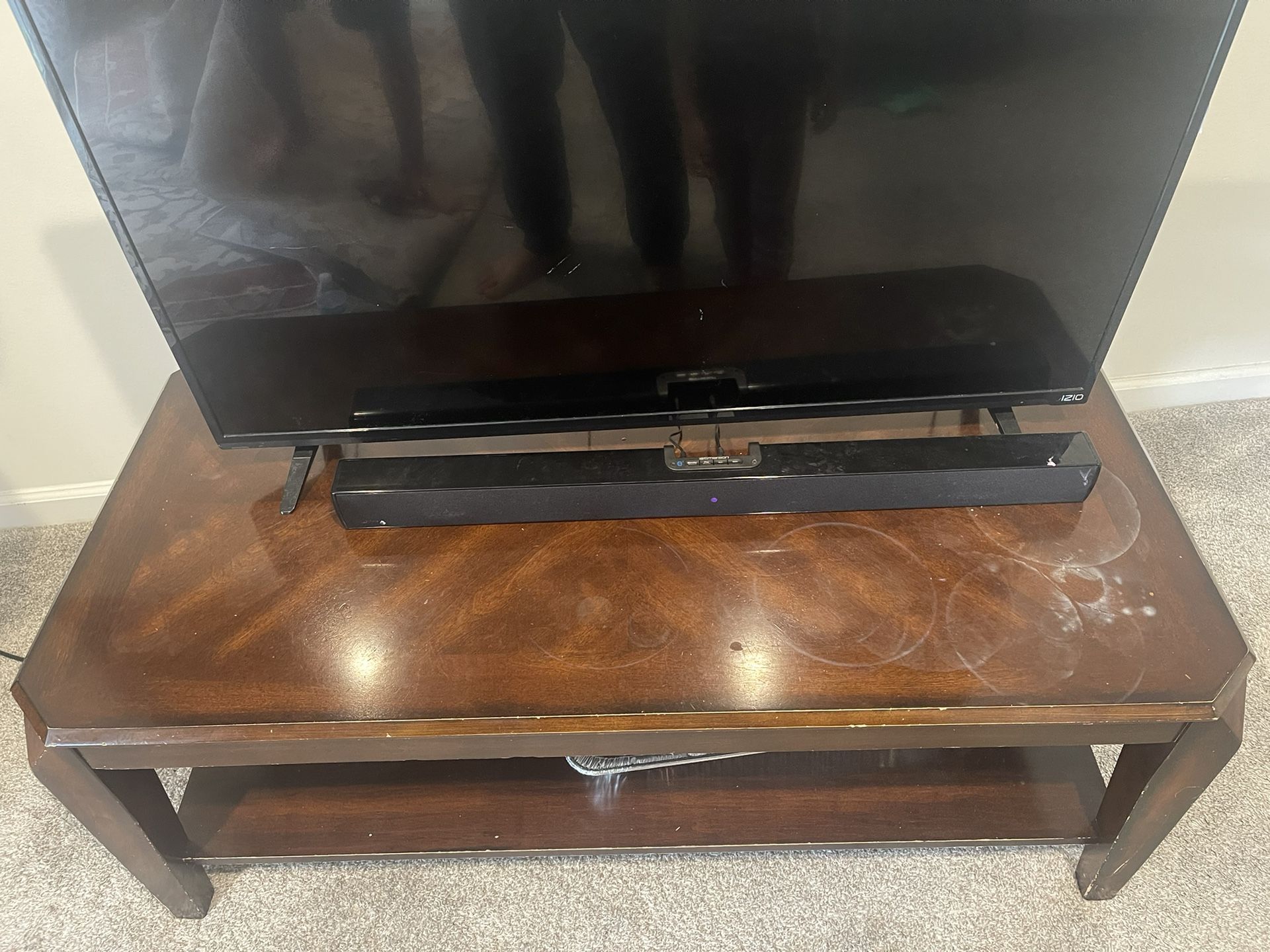 A set of leather and recliner sofas with two brow coffee tables for sale.
