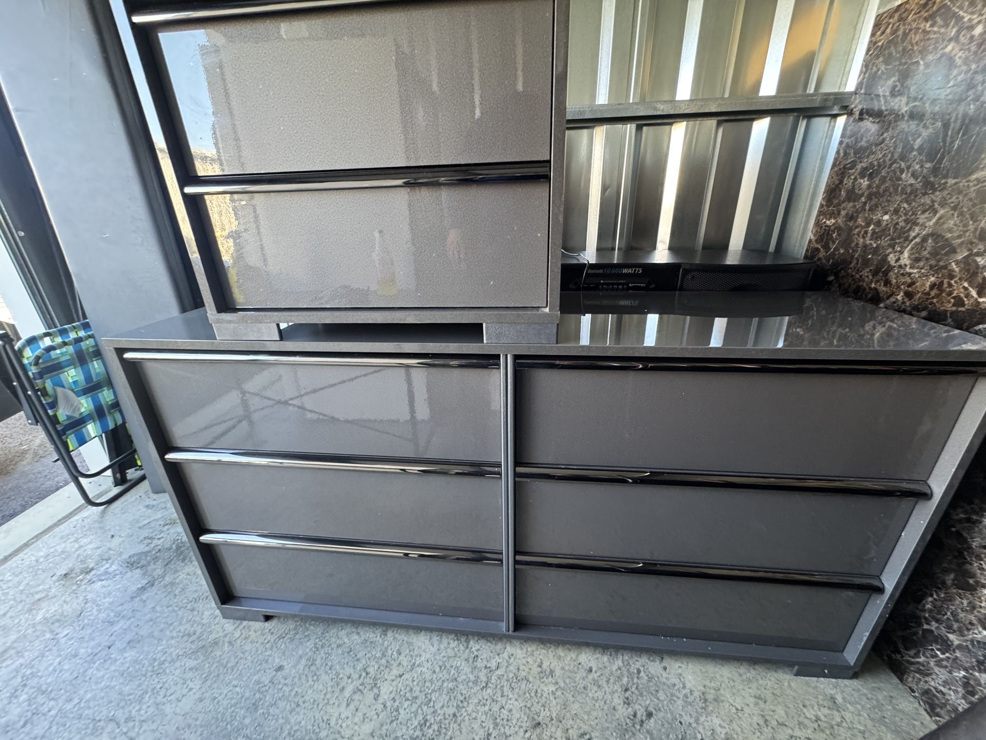 gray glossy dresser with knight stand soft closing drawer need gone asap make me an offer will need to be picked up ! winston salem area