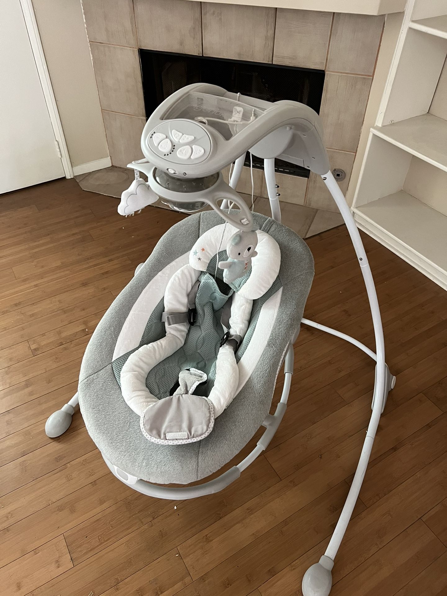Ingenuity baby swing. Unfortunately my son didn’t like a swing. He would only use his baby bjorn. So we didn’t use this swing much.