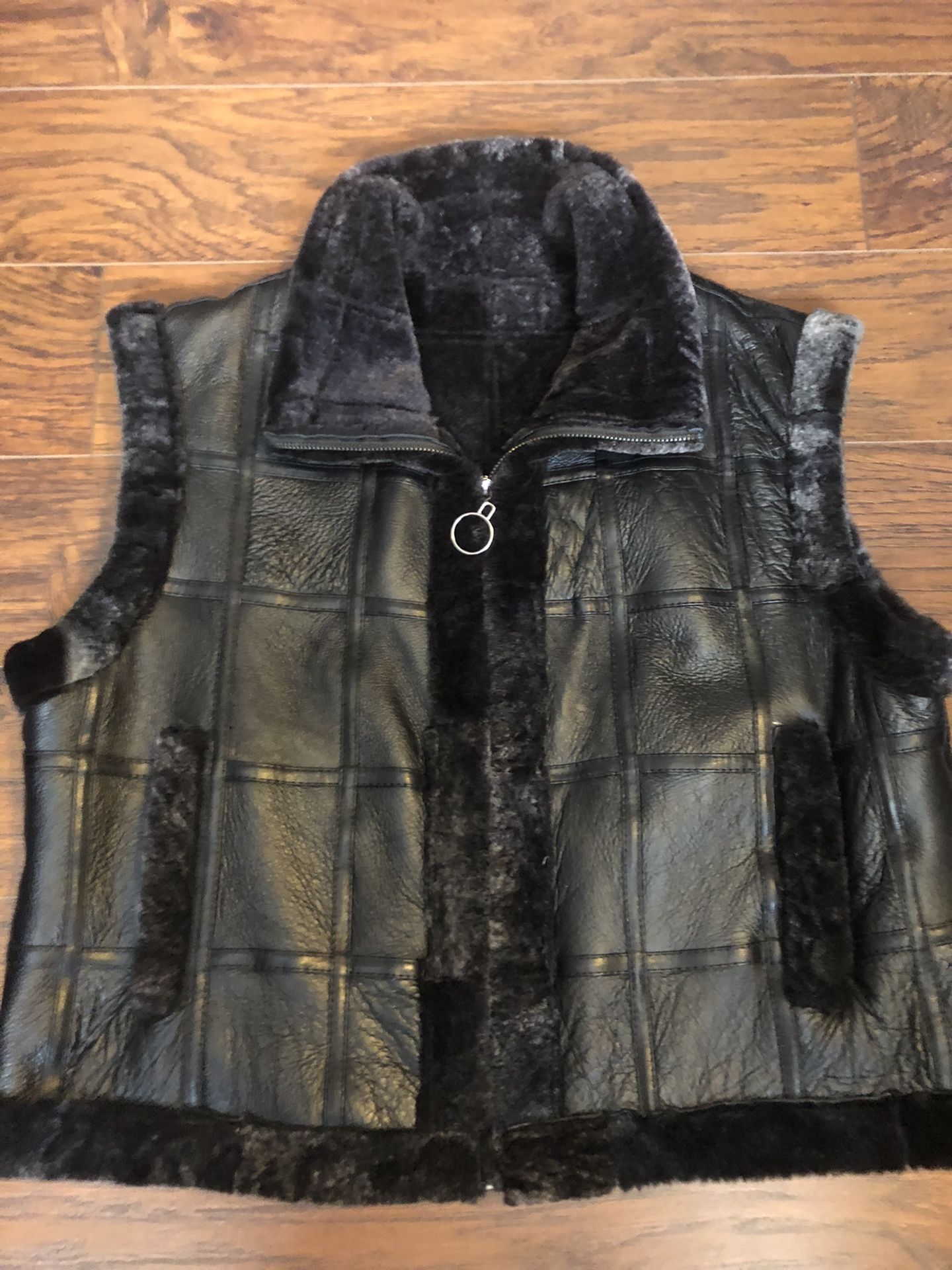 NEW Real Sheepskin And Real Soft Black Leather Size Medium Vest /looks good over a thin coat!