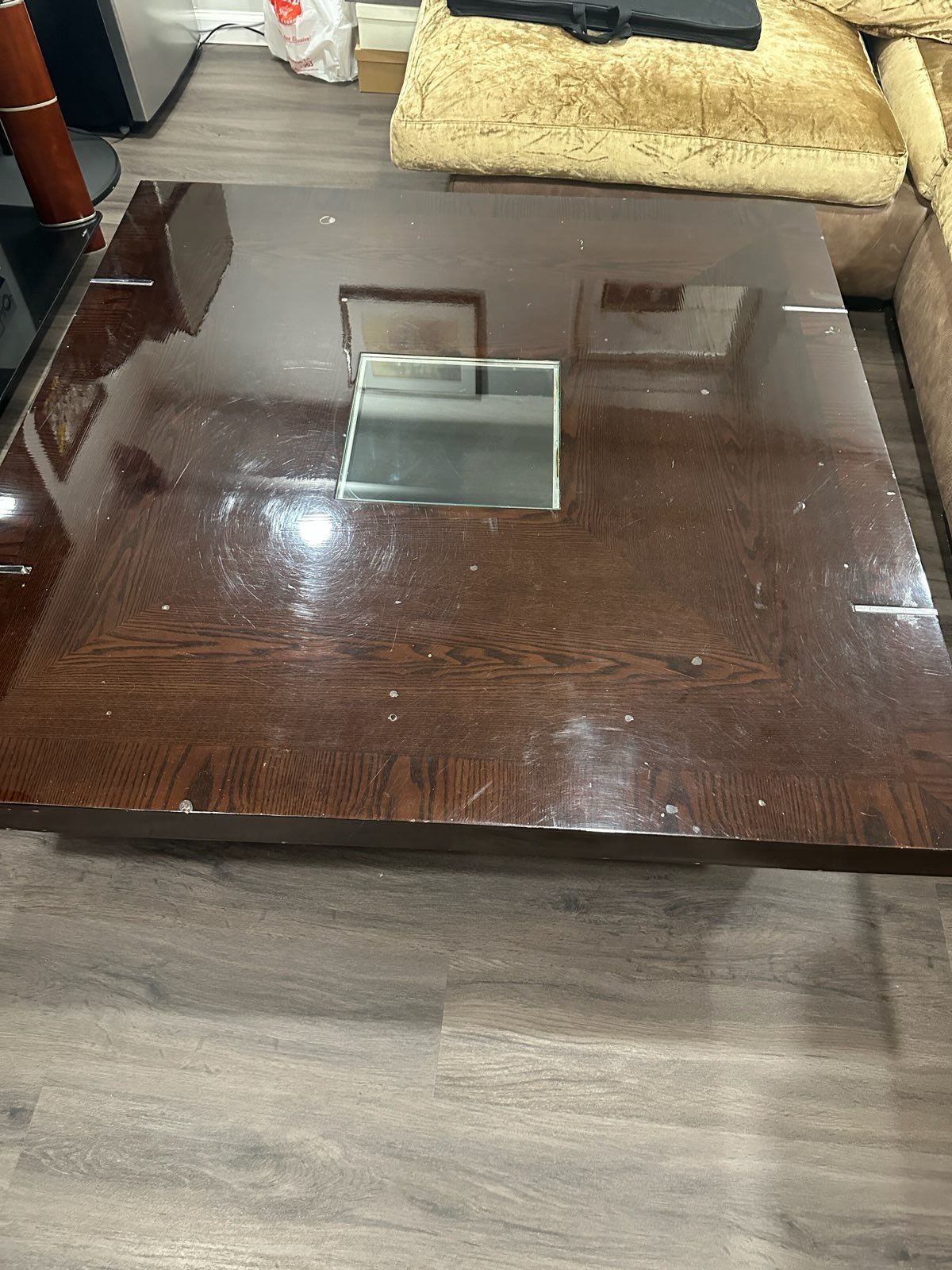 Italian furniture coffee table. Real wood. 4x4ft wide and 17” height .