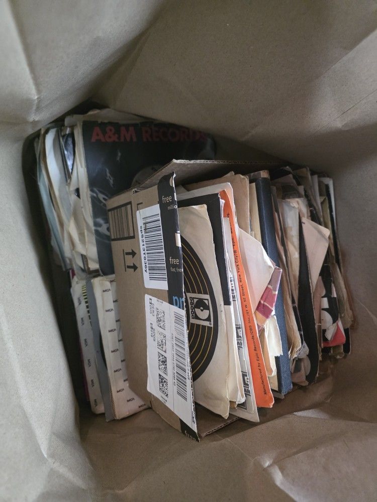 30 to 40 7-in vinyl. Let me know if you're interested and I will coordinate pickup