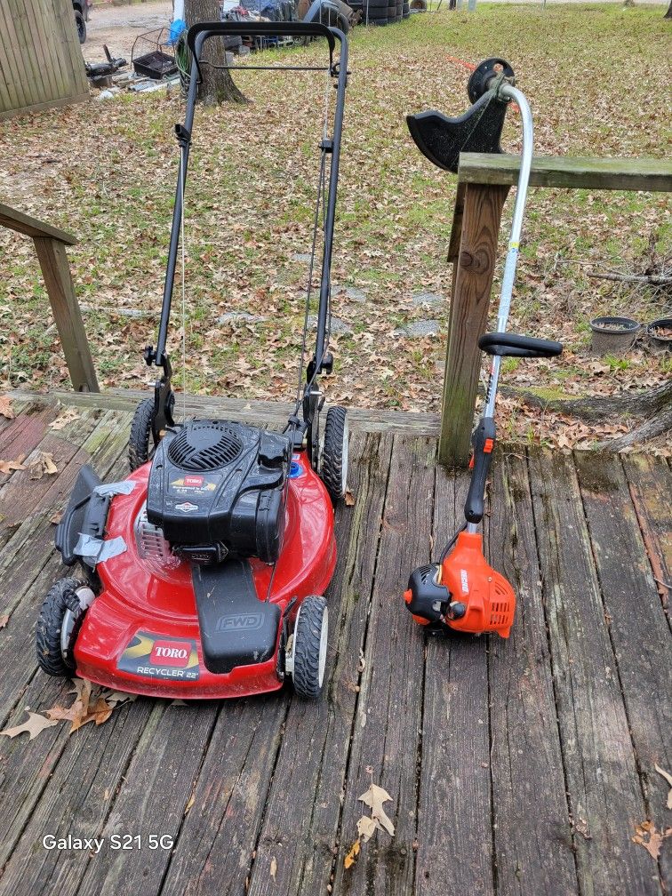 For sale lawn mower and weed eater combo. Asking price $350 or better offer like brand new only used 6 times. Toro recycler 22 for lawnmower model and echo weedeater