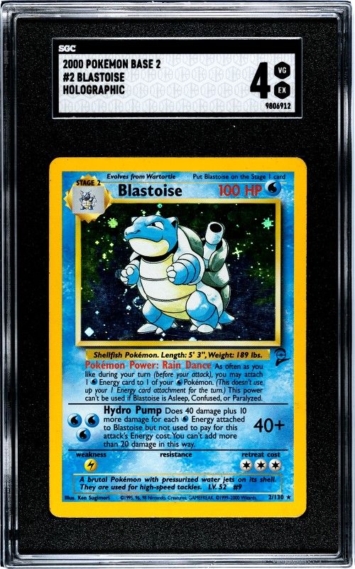 2000 Pokemon Base 2 #2 Blastoise Holographic Slab SGC Grade 4.