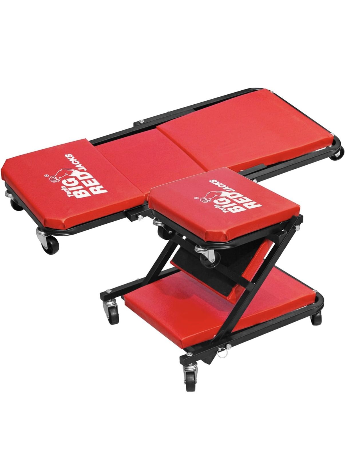 BIG RED ATR6036ZER 36" Foldable Z-Creeper Seat: 2-in-1 Garage Shop Creeper for Auto Repair with 6 Wheels, 300 Lbs. Capacity - Red