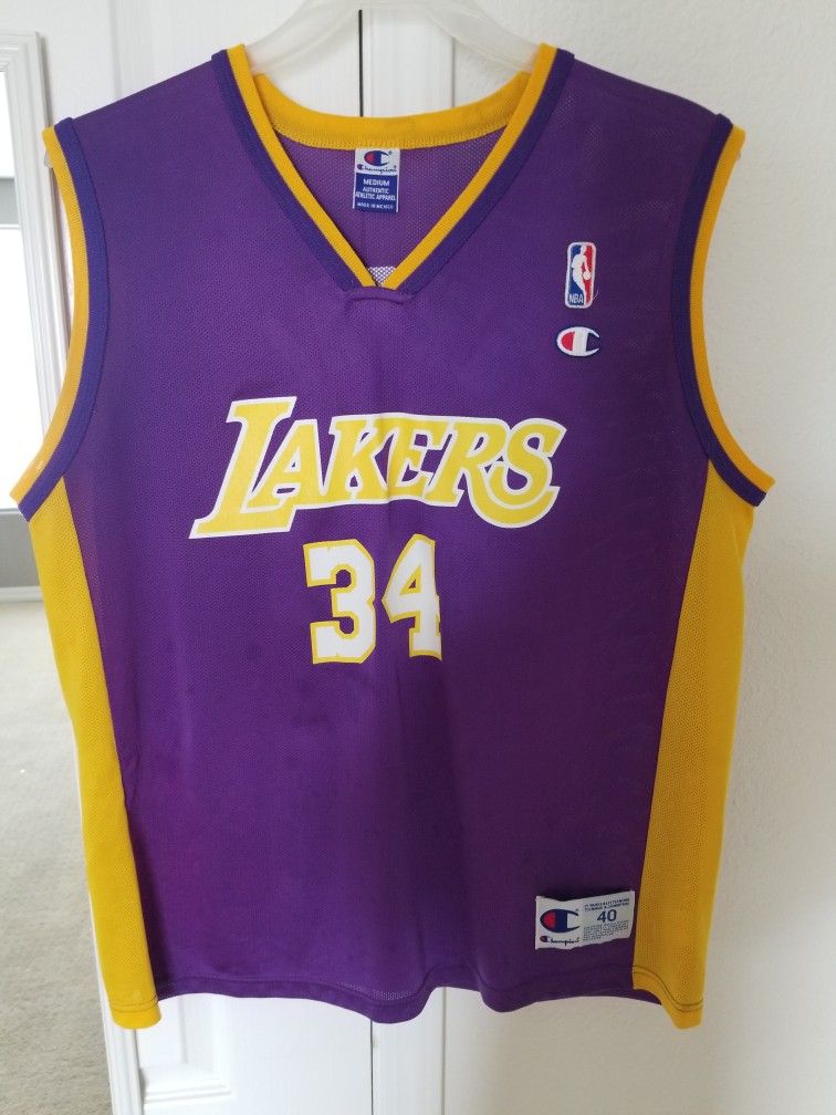 Shaquille O'NEAL Champion Los Angeles Lakers Jersey Size Medium 40. Gently used condition. Selling for $10. Message me if interested.