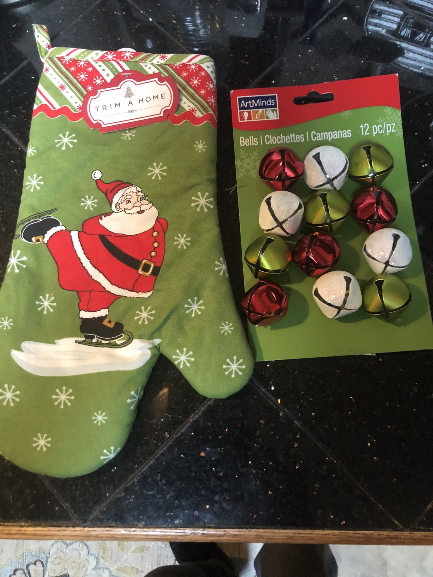 Santa Potholder and 12 pack of multi colored bells. $3,00 each or buy both for $5.00