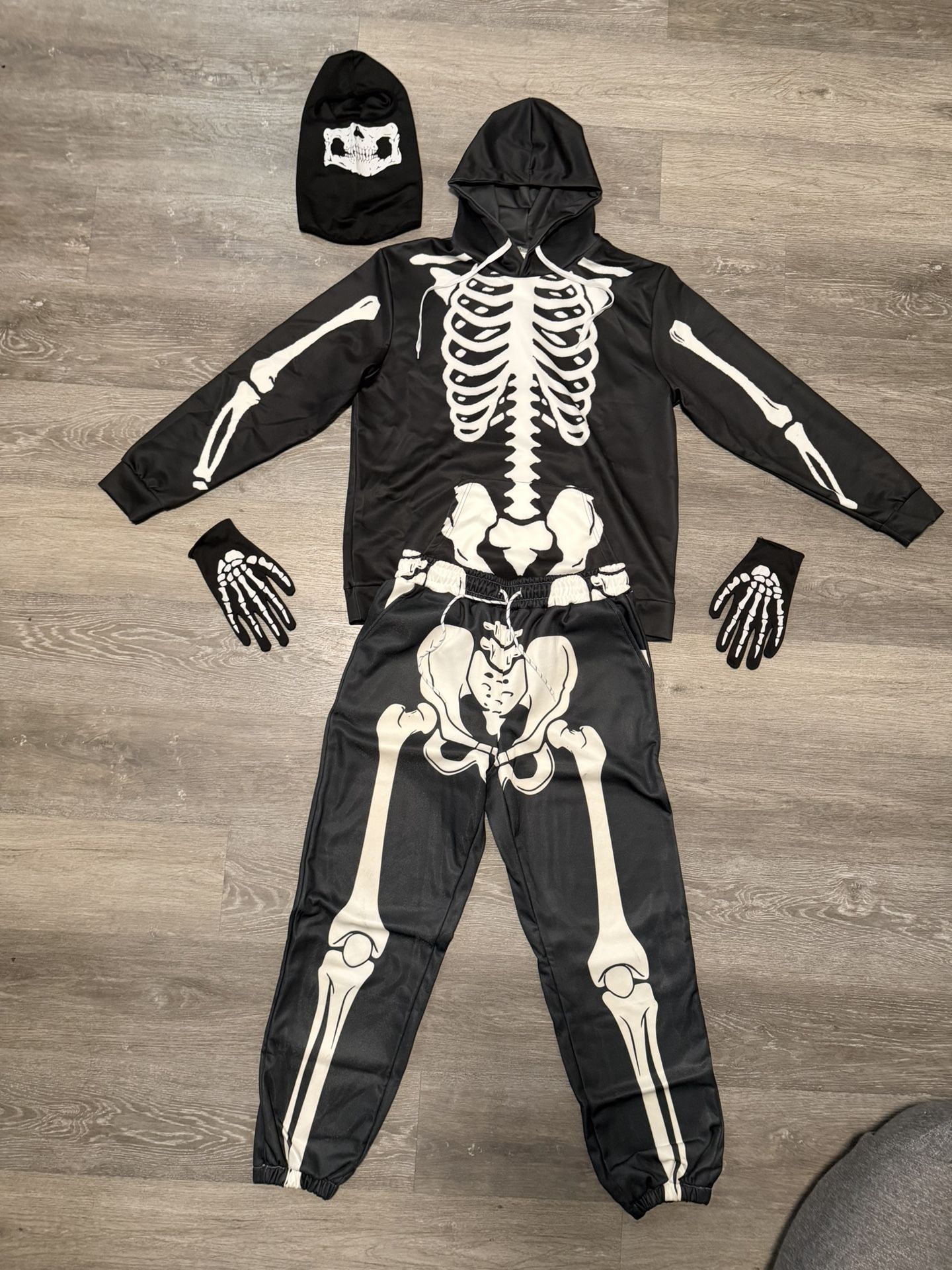 Skeletons Skull ๐ Halloween Very Good Quilty Costume ๐ Outfit Menโs (Size Large - Hoodie, Pants, Gloves, Mask)