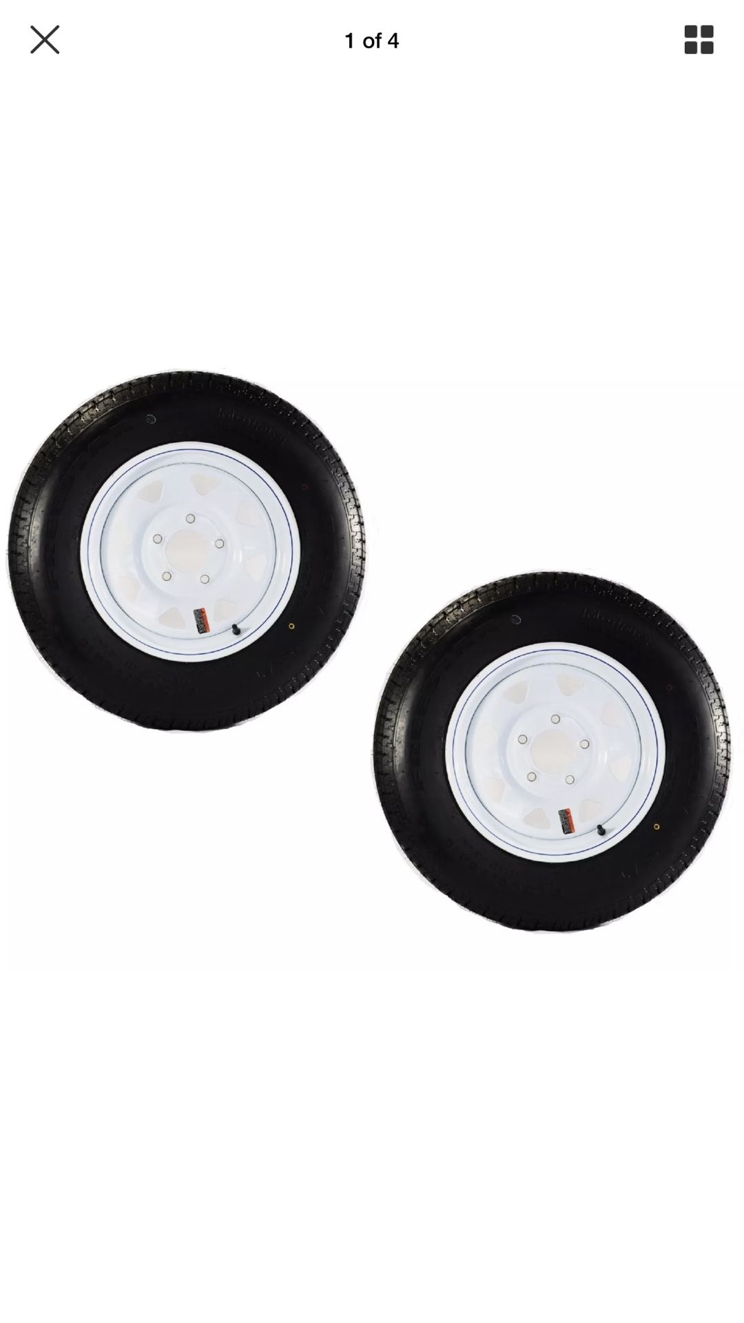 Two Trailer Tires + Rims ST185/80D13 5L 13 ST White Spoke Boat Camper RV