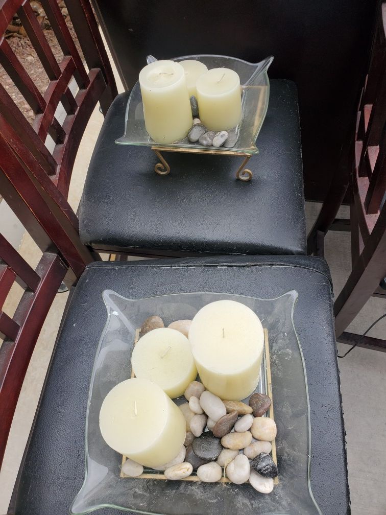 3 candles with glass, rocks and stand, I have 2.