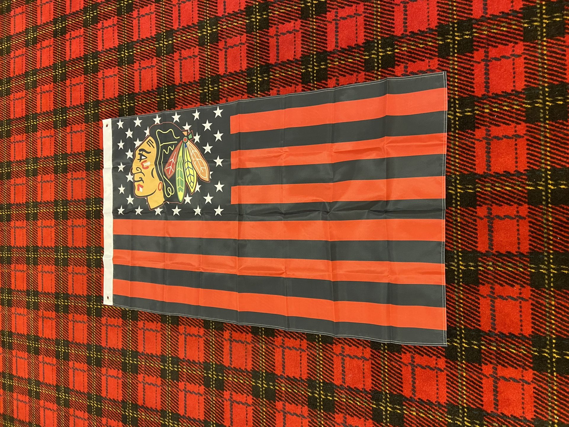 Brand new 3 foot by 5 foot. You can hang it up inside or outside. Would make a great addition to any man cave.