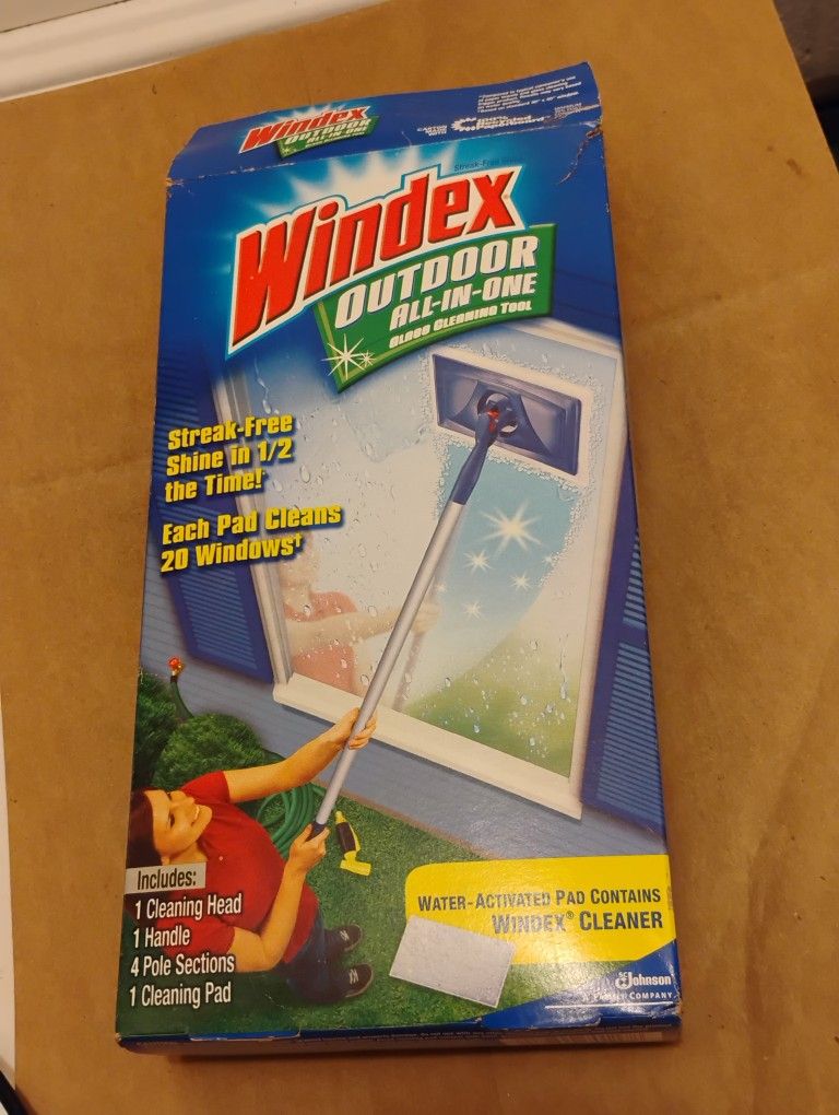 NEW in the box, cannot be taken apart after use Discontinued, going for $70-100 online Windex Outdoor All -in- 1 Glass Cleaning Tool Water activated pad, cleans 20 windows Reaches up to 11', can screw into extension Cleaning head, handle, 4 pole sections, 1 pad **Dobson & 8th Ave, just N of Southern