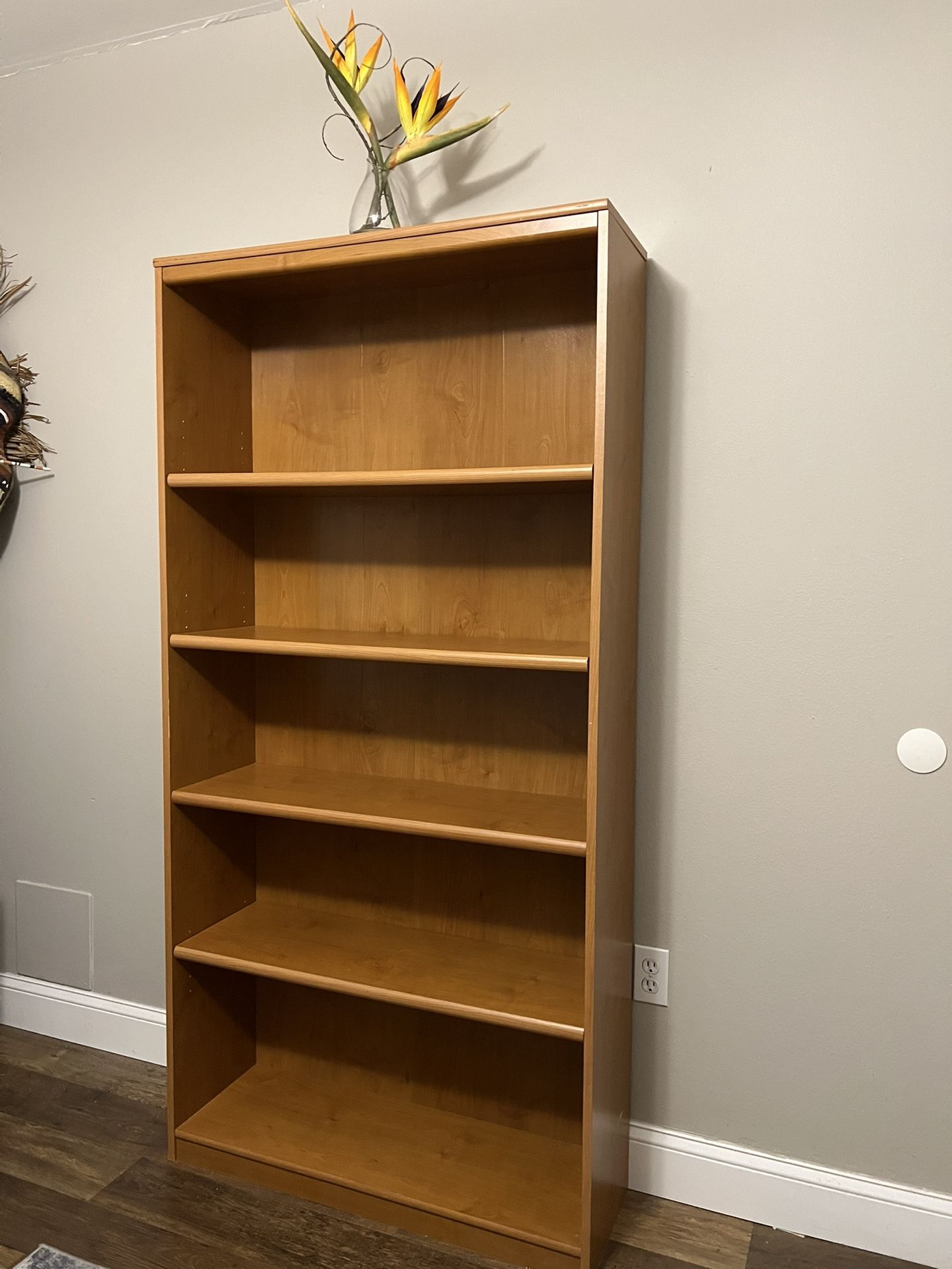 This multi purpose bookshelf is good for organization in any room of the house. It was being used as a bookshelf with divider cubes in it. The shelves are adjustable. It can be used for storage, holding cubes, collectibles, books, etc.. very little wear on side, see pic. Great enough shape for use inside house. Was used in bedroom but no longer needed due to disability purposes. (cubes not included, pictured to show they fit) Size is 72”T x 36”W x 11-1/2” D Selling for Only $25