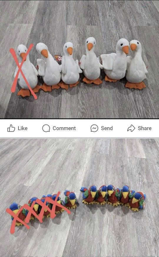 Ty beanie babies Jabber the parrot $5 each OBO Gracie the swan $5 each OBO Hope $8 each OBO Happy $8 each OBO Iggy $5 each OBO #12