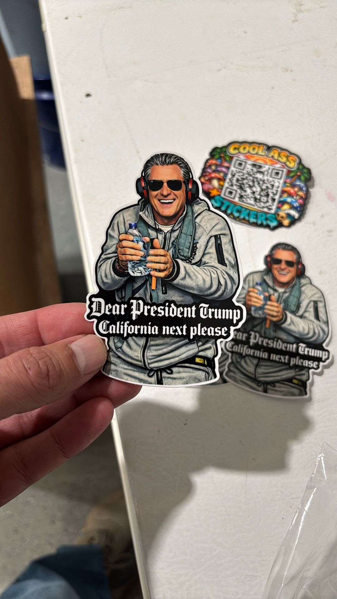 🔥 VIRAL GAVIN NEWSOM STICKERS 🔥 3 for $5 – Limited Run These stickers are blowing up. High-quality, full-color die-cut stickers featuring Gavin Newsom with a bold, hilarious political twist. ✔️ Thick, durable vinyl ✔️ Clean die-cut shape ✔️ Perfect for water bottles, laptops, toolboxes, skateboards, or street posts ✔️ Weather-resistant & long-lasting 💥 ONLY $5 for THREE stickers 💥 Buy one set or stock up 💥 Once they’re gone, they’re gone Get them while they’re hot 🔥 Local pickup or shipping available. Message me before they sell out.