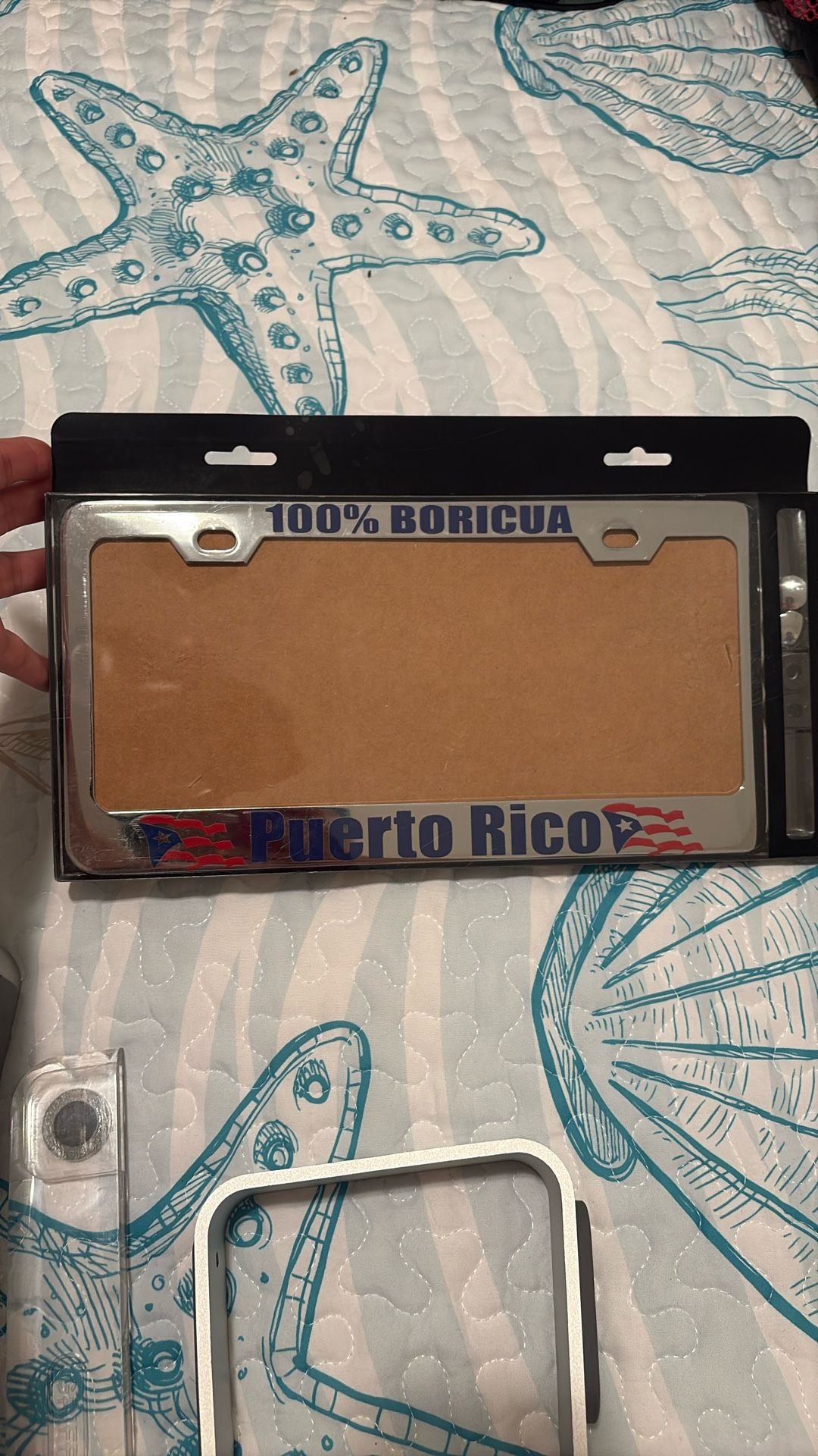 Puerto Rico license plate holder screws and backing in package