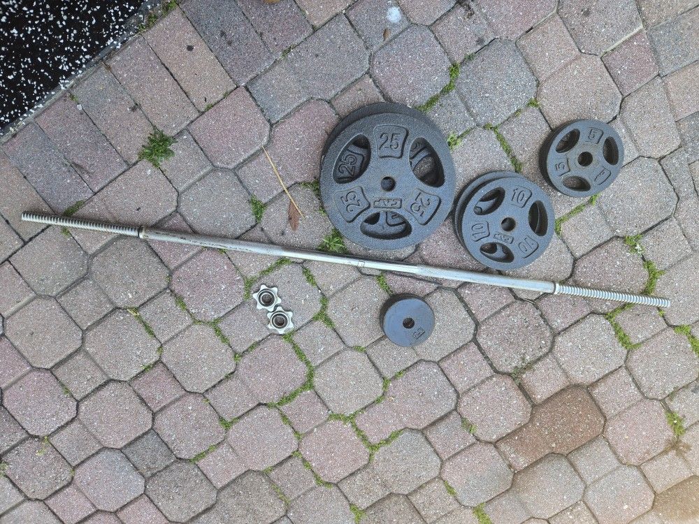 I am selling my Set of CAP barbell. Barbell is 67" long 2 - 25 plates 2 - 10 plates 2 - 5 plates 2 - 2.5 plates