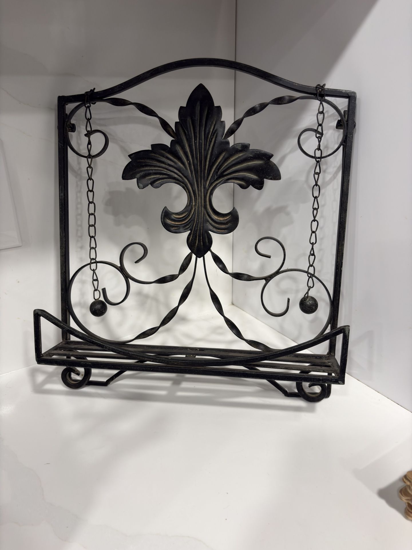 Vintage Wrought Iron Book Rack With Page Weight