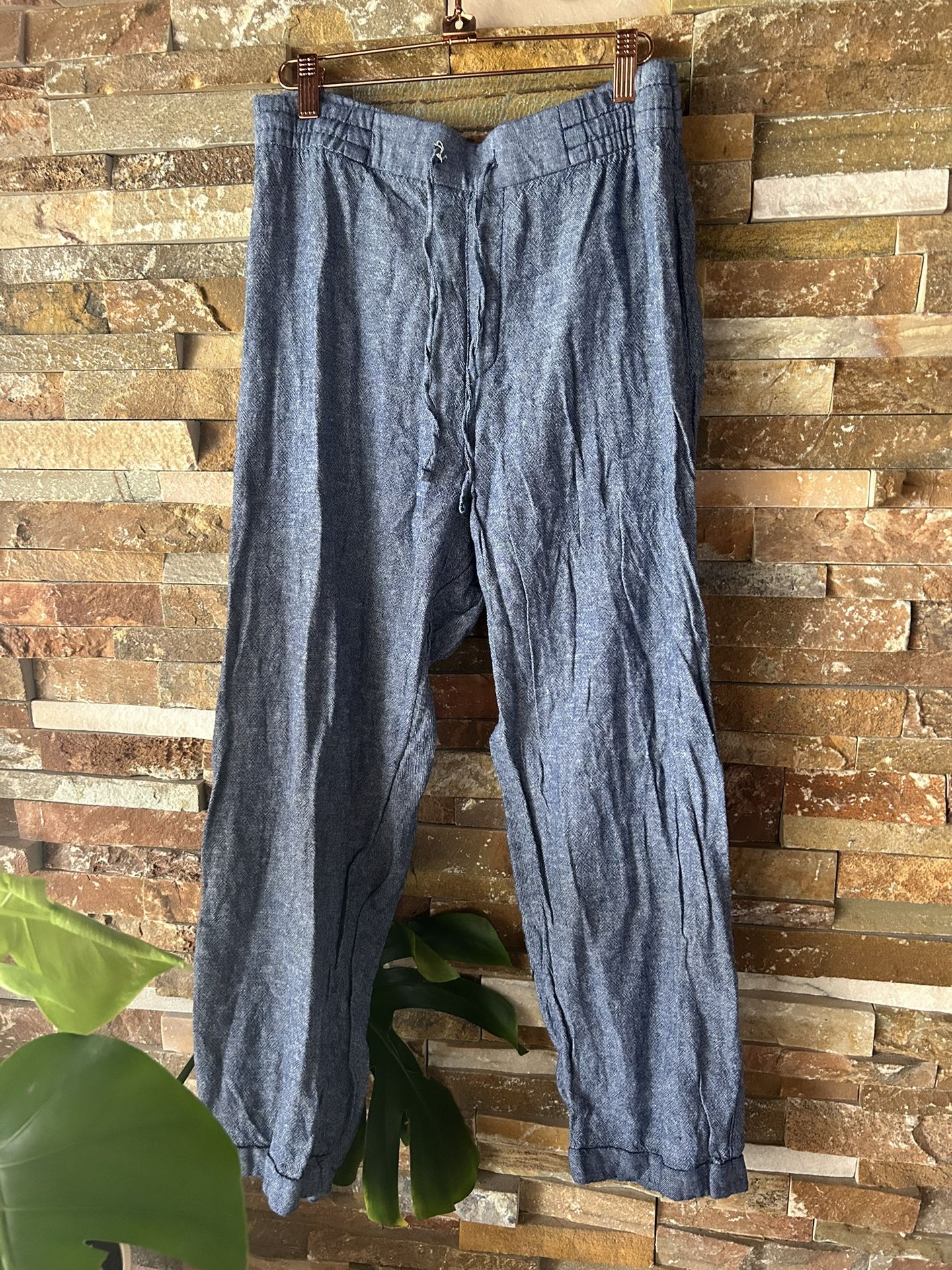 Banana Republic Pants Size 8 Lightly used Beautiful jean linen material Cuffed bottom Drawstring top Labels have been removed, thus the price.