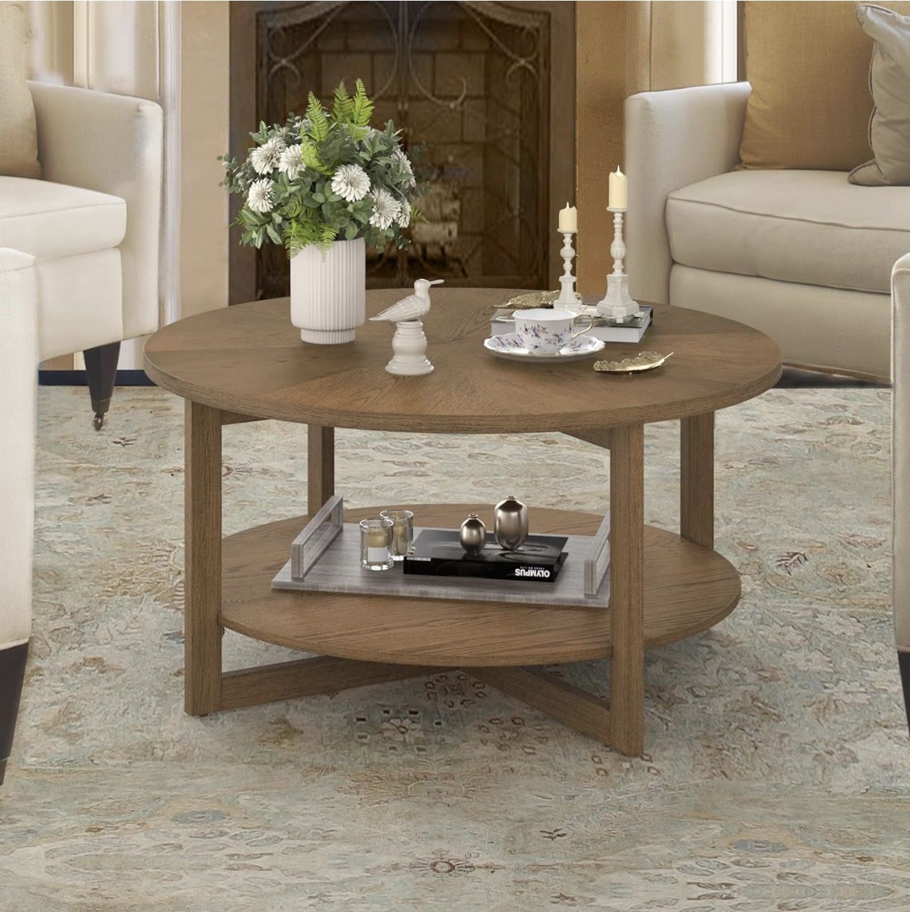 Dark Wood Round Coffee Table
