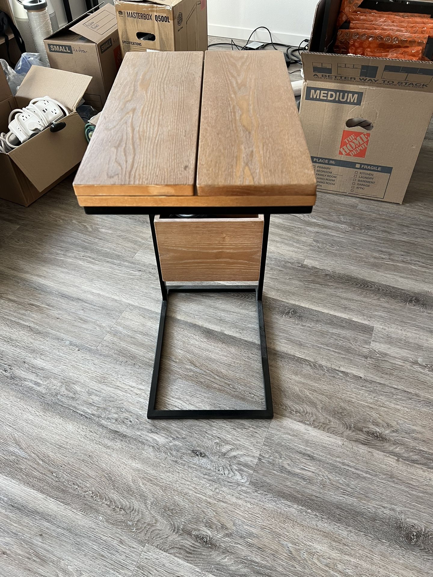 Used. Two power outlets and extension cable. Two USB-A ports. About 26 inches tall