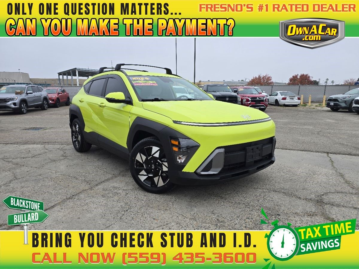 2024 Hyundai Kona for Sale in Fresno — Now at Own A Car Fresno If you're looking for a compact SUV that combines modern design, versatility, and practicality — the 2024 Hyundai Kona available now at Own A Car Fresno is a compelling option. Whether you need a city‑friendly ride, a commuter car, or a small SUV with usable cargo space and flexibility, the Kona checks a lot of boxes. ✅ Why Buy This 2024 Kona from Own A Car Fresno Trusted Local Dealership — Buying from Own A Car Fresno gives you a dealer‑inspected vehicle, transparent pricing, and the ease of a trusted local seller rather than a private party. Modern & Well‑Rounded SUV — The 2024 Kona brings updated styling, improved interior space, and features that make it a strong choice among small SUVs — great even if you don’t need a large vehicle. Kbb.com 1 Value & Versatility — The Kona offers a balance of manageable size, solid fuel economy, usable cargo/passenger space, and enough flexibility for daily driving, errands, or small‑family use. ⚙️ Performance, Engine Options & Fuel Economy The 2024 Kona lineup gives a few engine / drivetrain options depending on what you prioritize — convenience, efficiency, or a little more power: The base 2.0‑liter 4‑cylinder generates 147 hp / 132 lb‑ft of torque, with a CVT (or similar automatic) and front‑wheel drive (AWD optional). MotorDonkey 1 For buyers wanting stronger performance, there’s a 1.6‑liter turbocharged 4-cylinder available (on upper trims), producing about 190 hp / 195 lb‑ft torque with an 8-speed automatic — better for more responsive acceleration and heavier loads. Car and Driver 1 Fuel economy (with base engine and standard drivetrain) is rated around 29 mpg city / 34 mpg highway / ~31 mpg combined. Edmunds 1 Even with the more powerful turbo / AWD, the Kona remains reasonably efficient: typical combined mpg is in the mid‑20s depending on configuration. Car and Driver 1 This flexibility means whether you care most about efficiency or performance — there’s a Kona variant that can fit your needs. ��️ Interior Comfort, Space & Cargo — Practical & Day-to-Day Ready The redesigned 2024 Kona addressed some of the common space limitations of older small SUVs, making it more comfortable and practical: The cabin feels more spacious, thanks to a stretched wheelbase and slimmer front‑seat backs — resulting in improved rear‑seat legroom compared with previous generations. Car and Driver 1 For cargo: behind the rear seats the Kona offers about 25.5 cubic feet. When you fold down the rear seats, cargo space expands to around 63.7 cubic feet — generous for the class and adequate for luggage, groceries, gear, or weekend trips. J.D. Power 1 The cargo area is thoughtfully designed with a height‑adjustable load floor, hooks, a light, and other small touches to improve usability — useful if you regularly carry varied loads. Capital One 1 Interior materials and layout — depending on trim — can include comfortable seating, modern infotainment, and convenience features, making the Kona feel more premium than its price might suggest. TrueCar 1 Altogether, the 2024 Kona offers a nice balance: compact enough for city driving and parking, but functional enough for cargo or small‑family needs. �� Who the 2024 Kona Is Right For The 2024 Hyundai Kona at Own A Car Fresno is a strong match for: Individuals or couples wanting a compact SUV — easier to park and maneuver than larger SUVs, but with more utility than a standard car. Buyers who need flexibility: commuting, errands, occasional road trips, groceries, gear hauling — without overspending on a big SUV. Those who value a balance of efficiency and practicality — good fuel economy, adjustable cargo/passenger space, and modern features. First‑time SUV buyers or small families who want a manageable SUV footprint but still want versatility.