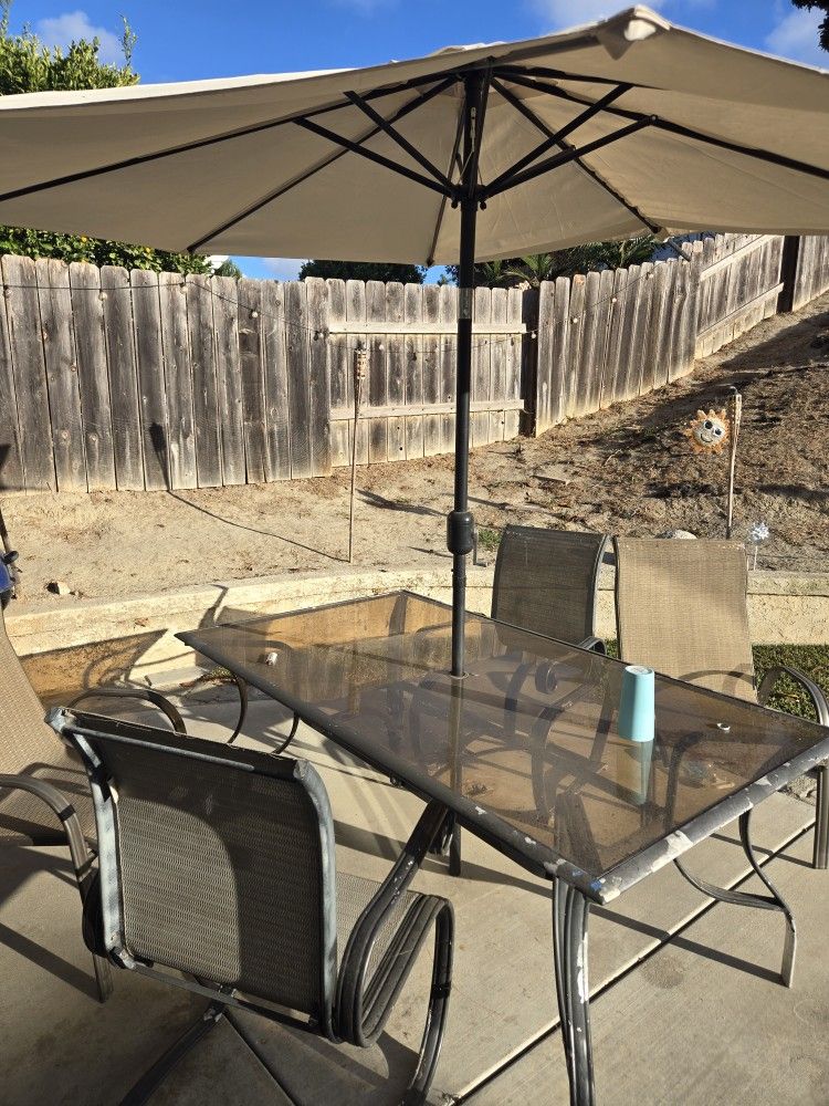 Glass Table With Umbrella And Stand