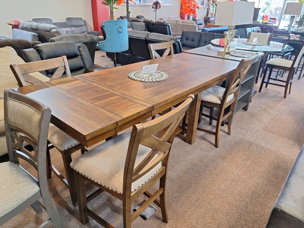 Counter Height Dining Extensión Table 4 Chairs And Bench