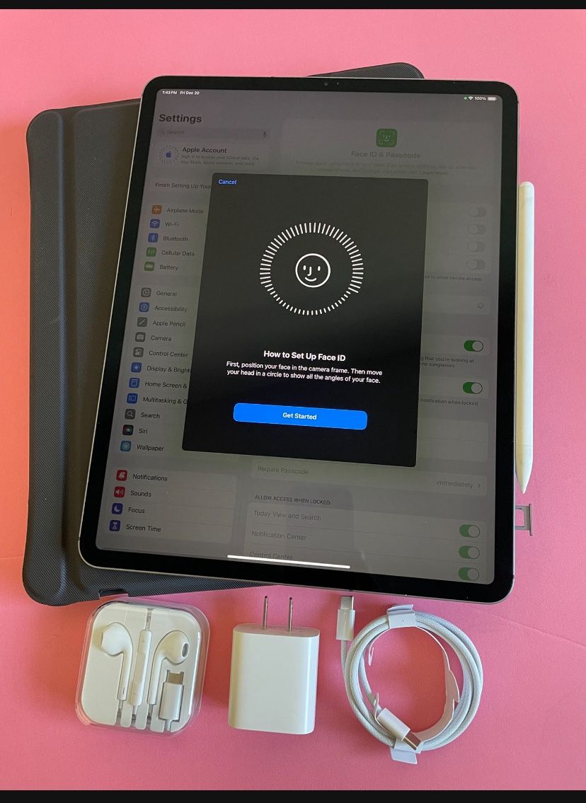 Apple IPad Pro 12.9” 3rd Generation (Face ID/Liquid Retina Display) 256GB WiFi + cellular (Unlocked) with keyboard, Pen & Accessories