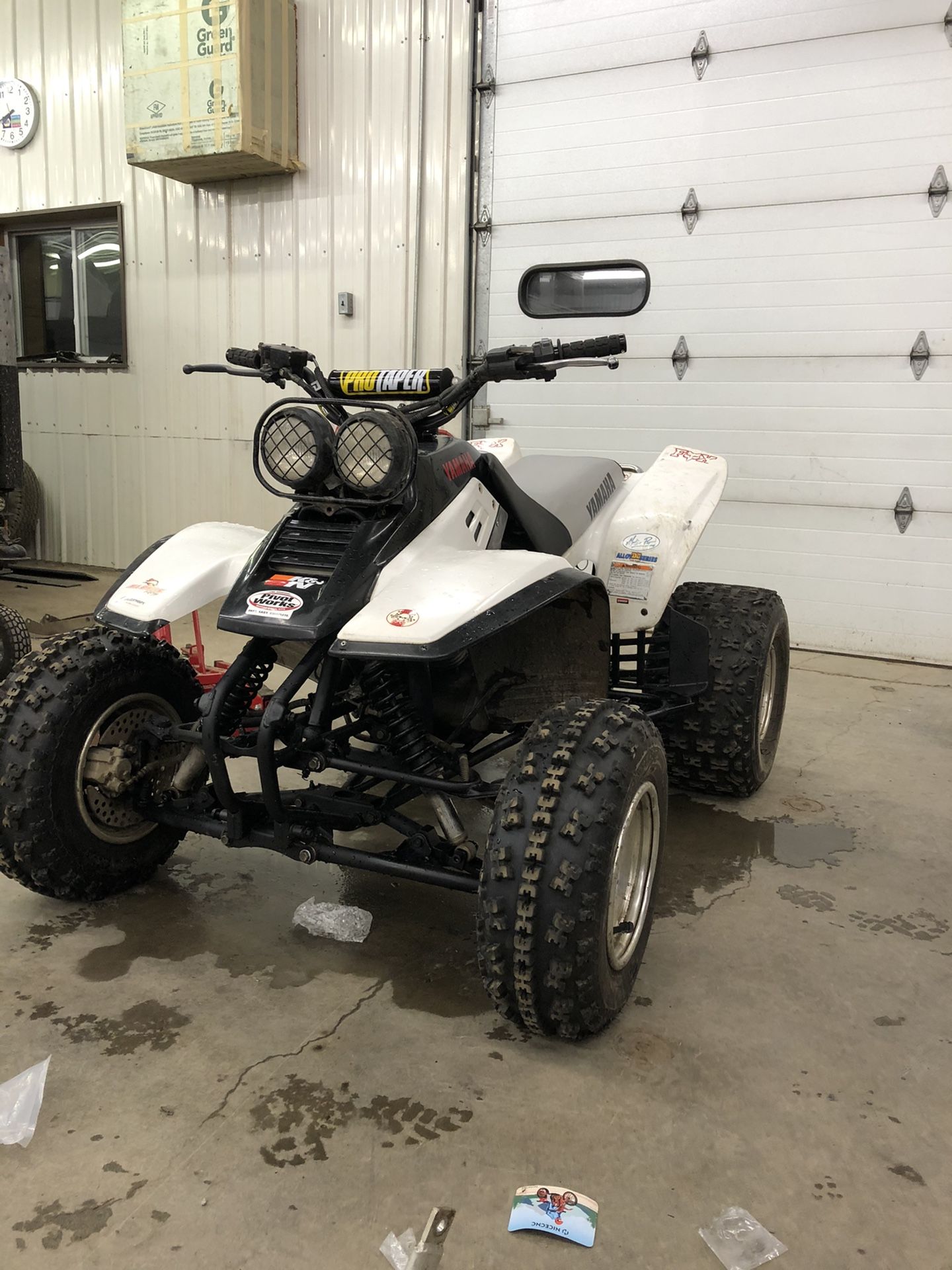 01 Yamaha warrior has full dg exhaust new rear tires fairly new front tires new high compression wesico piston with 8 hours on it new snow tires with wheels will sell with it for extra $100 comes with stock front bumper and dg front bumper new rear axle and carrier bearings and comes with front lowering kit new protaper bars and odi grips painted frame satin black and new seat cover needs new starter want 2200 no trades is available if still posted and non negotiable.
