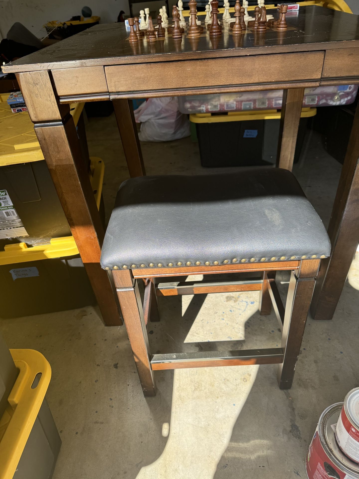 A very nice game table. Good for various games. Storage are for chess pieces, cards, checkers. Can store poker chips as well (poker chips not included, but chess, checker and cards are included). Four comfortable chairs.