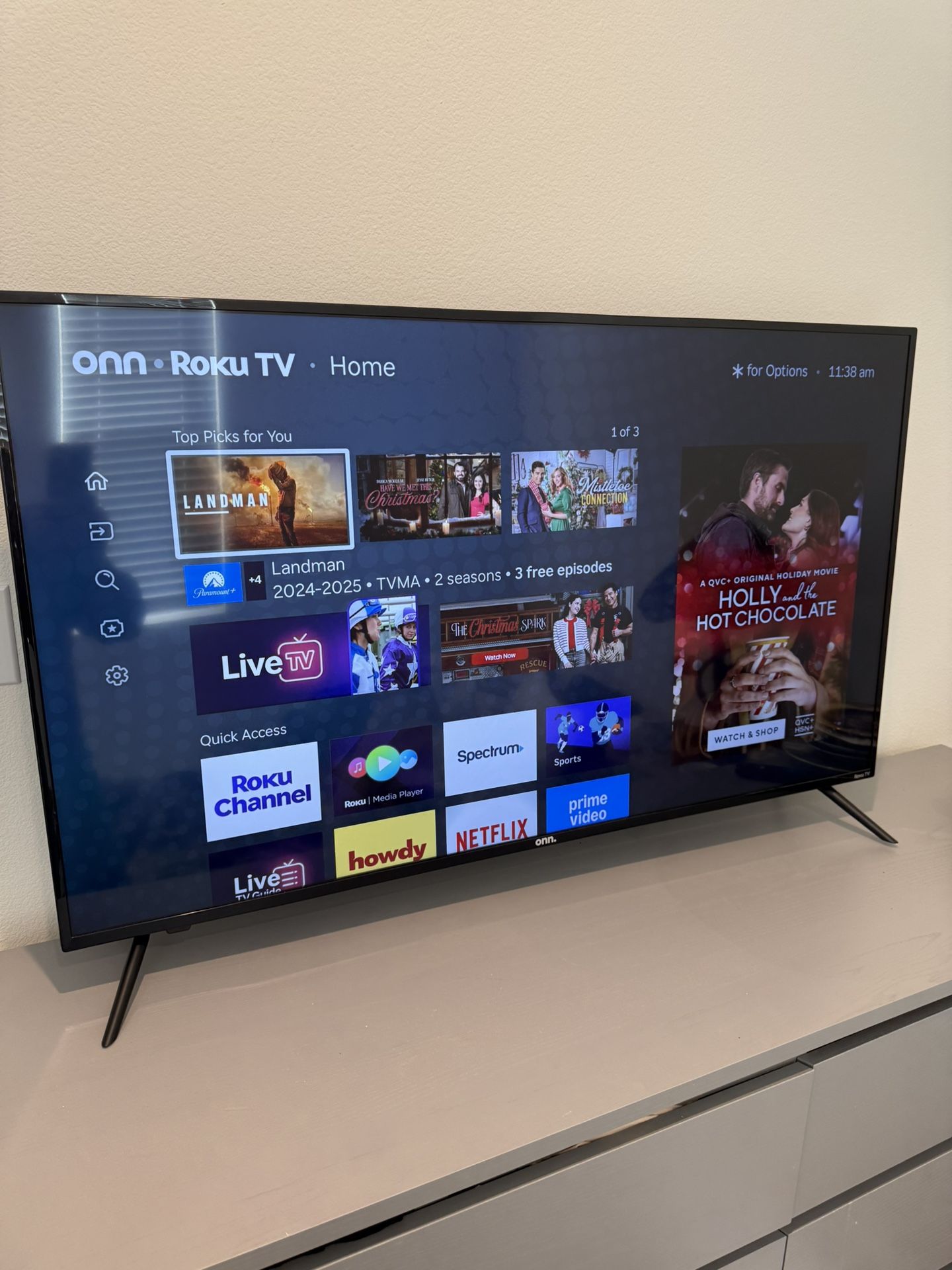 roku tv. in bedroom, used about 5 times, beautiful clear picture original remote. like new!! 40 inch. LIKE NEW