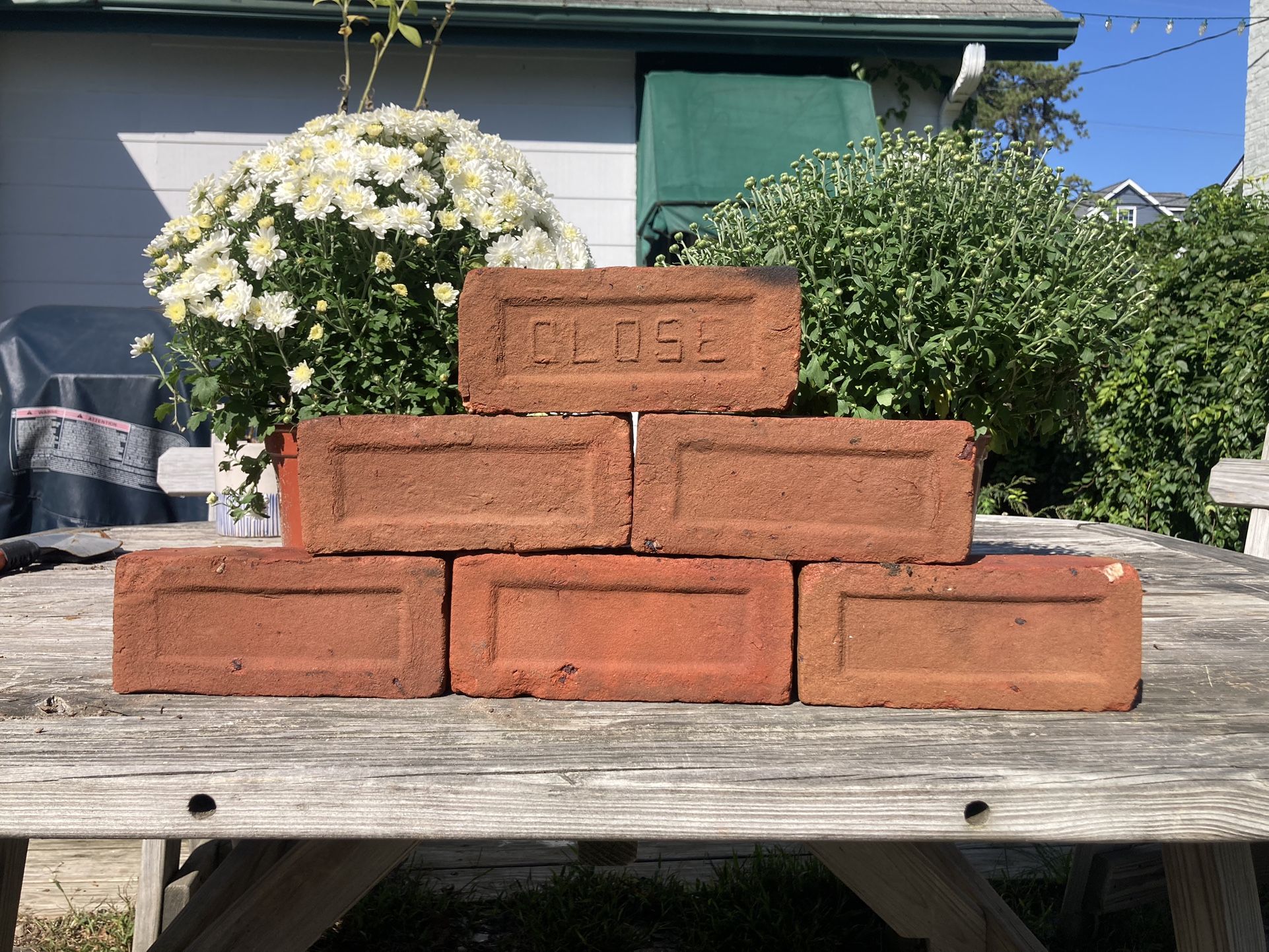 Charles Close Made hand made bricks Red clay pavers 6 Hand made and hand stamped In Matawan New Jersey Approx 1(contact info removed) You will receive 1 brick with the name ( frog ) CLOSE & 5 bricks with no name ( blanks ) 6 total Get some Matawan history