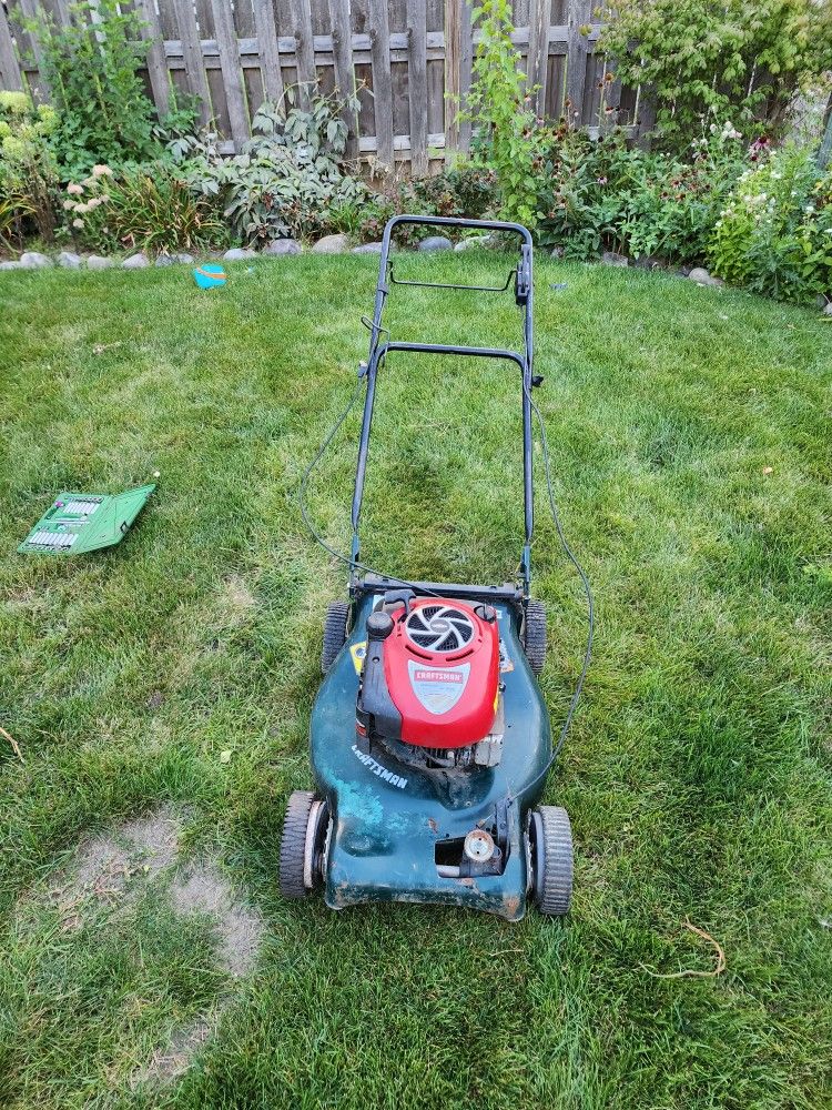 It starts up and cuts well. The self propelled belt broke . Who ever buys it can replace it. If interested message me