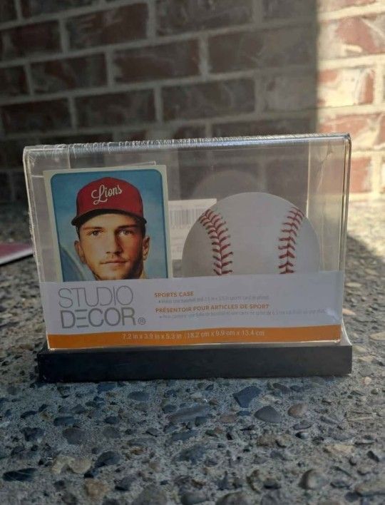 Product details Top highlights ColorBlack BrandStudio Decor Product Dimensions7.2"L x 5.3"W x 7.2"H Frame MaterialPlastic, Engineered Wood Item Weight18.2 Pounds Mounting TypeTabletop Mount Display a baseball and a sports card in this baseball photo display case by Studio Décor. It makes a great accent piece for a bookshelf, coffee table or desk. This acrylic case will be a wonderful addition to a sport-themed café or room. Give it to a baseball enthusiast to make him feel special. Clear case with black base. 7.2” x 3.9” x 5.3” (18.2cm x 9.9cm x 13.4cm). Holds one baseball and one 2.5” x 3.5” (6.35cm x 8.89cm) card or photo. Acrylic, polystyrene and MDF.