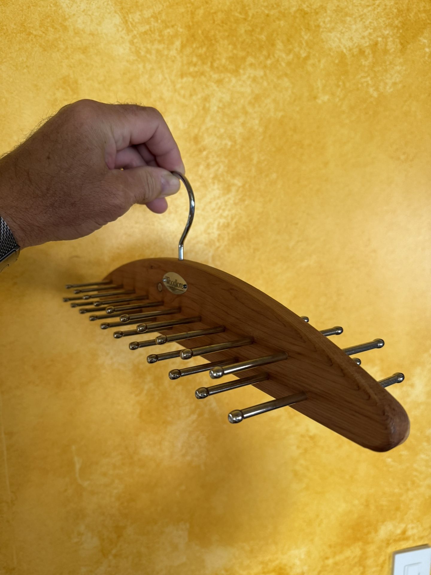 Lightly used in new mint condition natural cedar wood tie hanger. Holds a minimum capacity of 42 ties and neatly hangs in your closet. New sells for $35 and up.