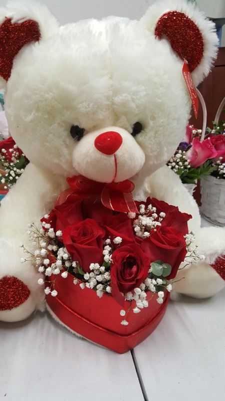 Valentines teddy bear with fresh Roses