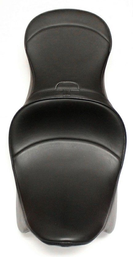 Drag Specialties model 0801-1010 low profifle forward positioning touring seat, like new in box. Features: Low profile double bucket seat with solar reflective leather in seating area and automotive-grade leather-like vinyl on the sides; features improved shape and molded flexible urethane foam interior for added comfort. 3/16in. ABS thermoformed seat base for a perfect fit, carpeted bottom and rubber bumpers to protect paint. Driver area is cut narrow in the front to help eliminate pressure on the inner thighs. Front measures 14in. W, rear measures 11 1/2in. W. Seat moves rider forward 2in. compared to stock seat. This item fits Harley Davidson 2008-present touring models.