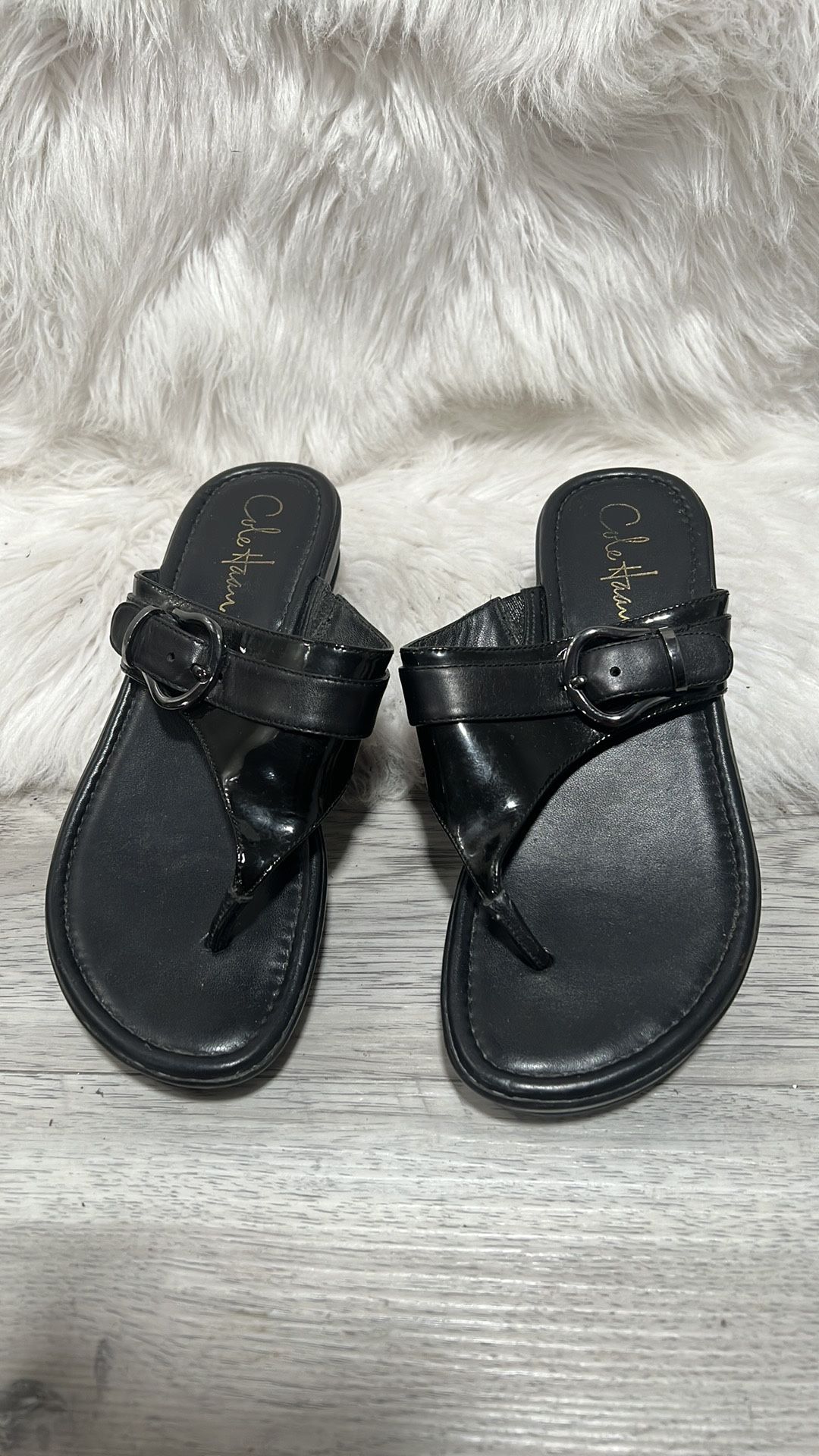 COLE HAAN black Leather Flip Flop Thong buckle Platform Sandals 6.5 B