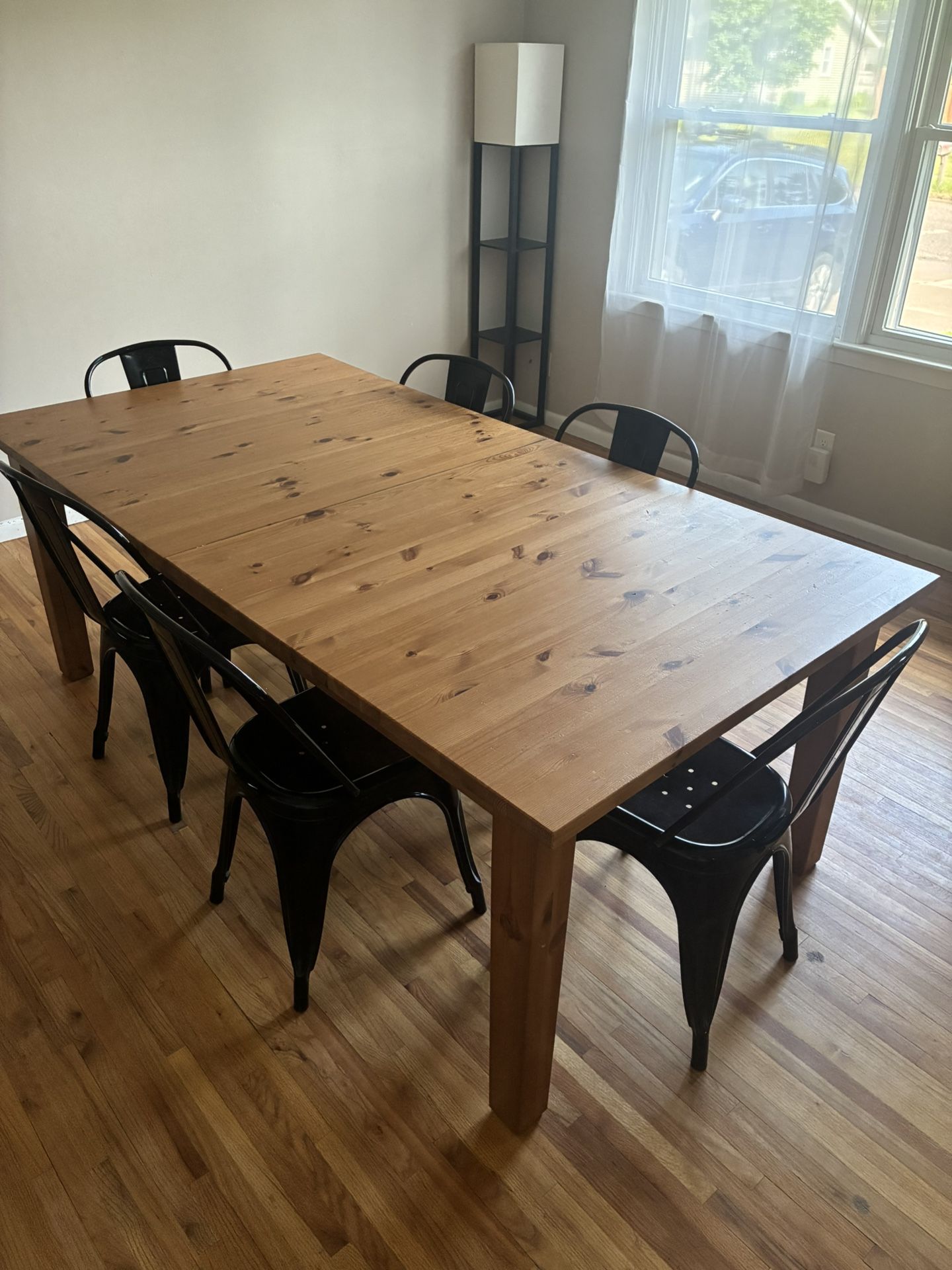 IKEA dinning table. 80” expandable with two extra leaves. 8 dining chairs sold separately.