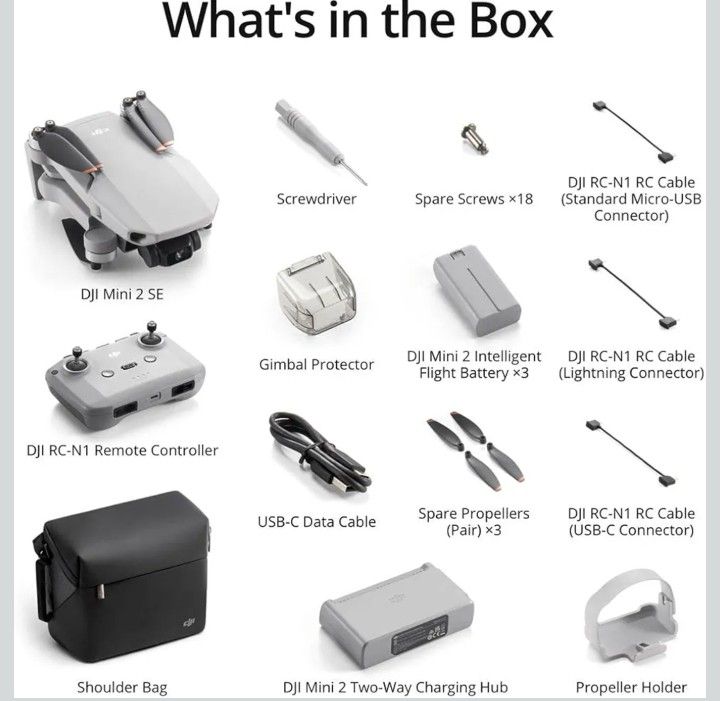 Lightly used DJI Mini 2 in excellent condition. Comes with the Fly More bundle including extra batteries, charging hub, carrying case, and accessories. Always flown responsibly and never crashed. Great beginner drone or travel drone. *Due to its size and weight no registration is needed $400 OBO
